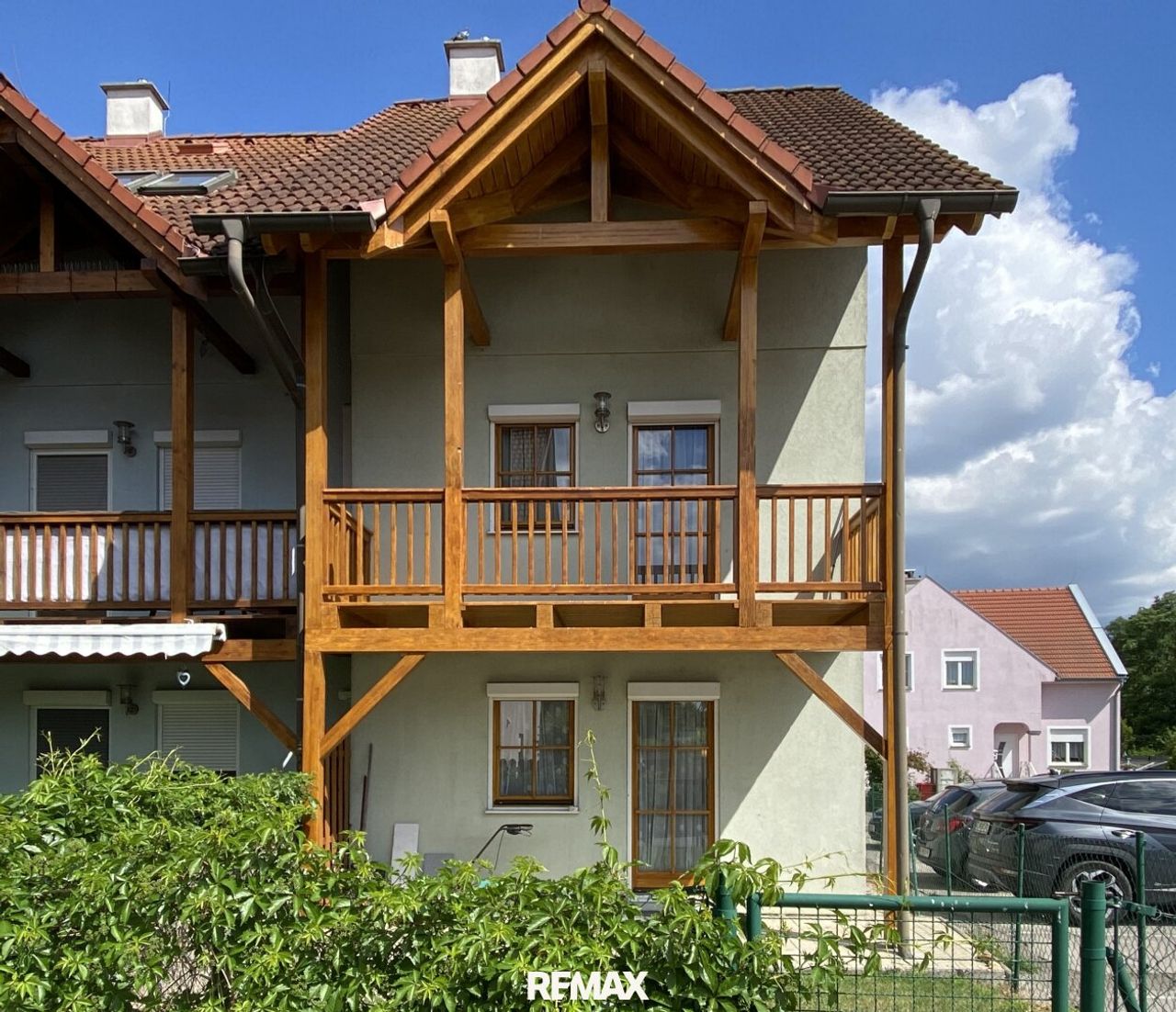 Schon vor dem Haus zeigt sich ein klarer Vorteil: Zwei eigene Autoabstellplätze direkt vor der Tür – in dieser Wohnanlage keine Selbstverständlichkeit.
