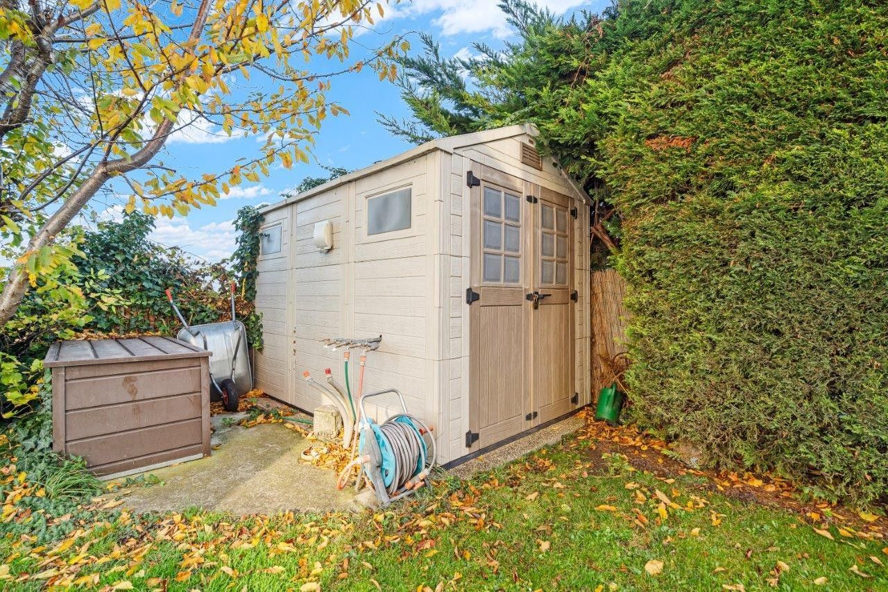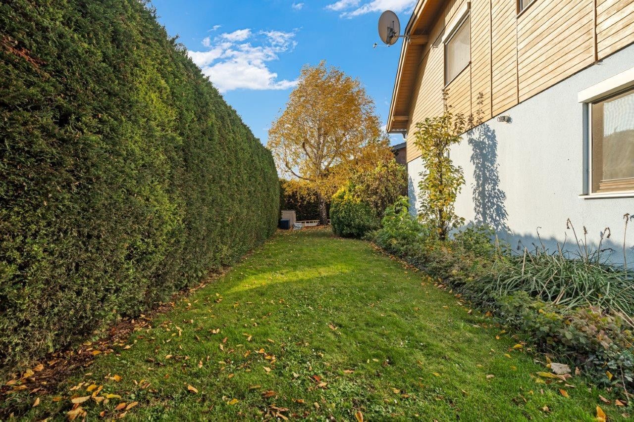Südlich ausgerichtet, möchte man bei jedem Sonnenstrahl sofort auf die ca. 24 m² große Terrasse mit dem gemauerten Grill und den Abgang in den schönen Garten. Die Hecken und Zäune schirmen den Bereich angenehm ab, um ungestört die schönsten Stunden des Tages mit der Familie und Freunden zu verbringen. Großer Schirm, Platz für einen kleinen Pool oder ein Whirlpool, Gartenhütte. Alles da.