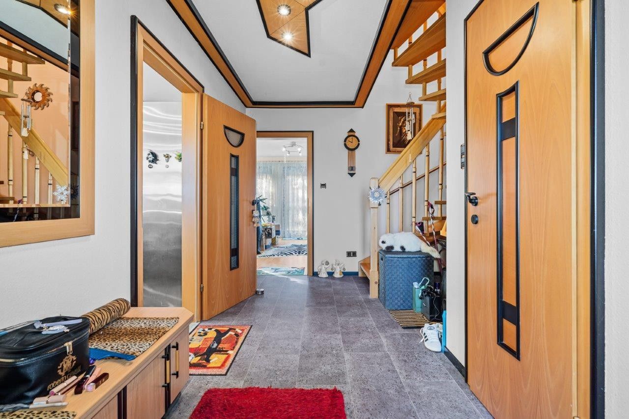 Von der verkehrsberuhigten Zufahrt fahren Sie mit dem Auto gleich unters Carport - und schon geht es zum liebevoll gestalteten Eingangsbereich. Sicherheitstüre, Alarmanlage, breiter Vorraum, aufwändige Tischlerarbeiten, Türen und Zargen hochwertig ausgeführt, eine Treppe wie aus einem Guß.