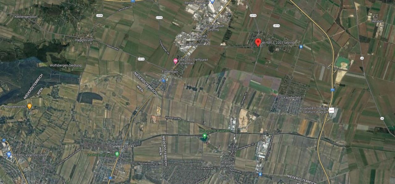 Im österreichischen Kernland Niederösterreich, am Rande des Marchfeldes liegend, Seyring. 1805 wurde die Katastralgemeinde Gerasdorf konstituiert. Nach dem Anschluss an das Dritte Reich 1938 wurde der Ort Wien eingemeindet. 1954 wurde die Gemeinde – mit dem Gebietsänderungsgesetz und der Rückgliederung der Wiener Randgemeinden in das Bundesland Niederösterreich – wieder selbständig. Erst 1972 wurde die Gemeinde Seyring in die Gemeinde Gerasdorf eingegliedert.