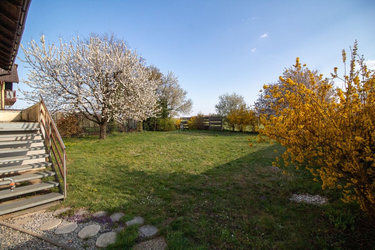 Die Süd-Ausrichtung sorgt im gesamten Haus für eine lichtdurchflutete und freundliche Wohnatmosphäre. Von der Terrasse genießen Sie einen wunderbaren Ausblick ins umliegende Grünland – der ideale Ort, um Kraft zu tanken und den Alltagsstress hinter sich zu lassen.