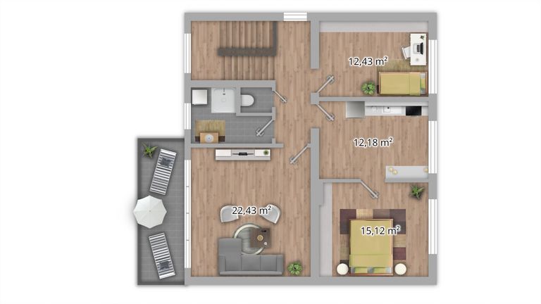 Obergeschoss – eigenständiger Bereich mit Balkon