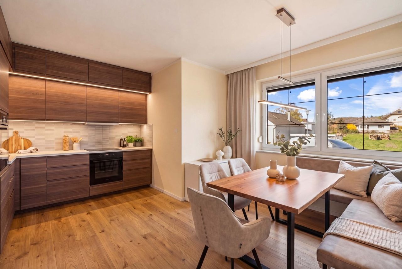 Zur besseren Vorstellung wurden ausgewählte Bereiche (u. a. Küche und ein Schlafzimmer) mittels Interior-Visualisierung modern dargestellt. So erhalten Sie bereits vorab ein realistisches Gefühl dafür, wie sich der Bestand stilvoll transformieren lässt.
