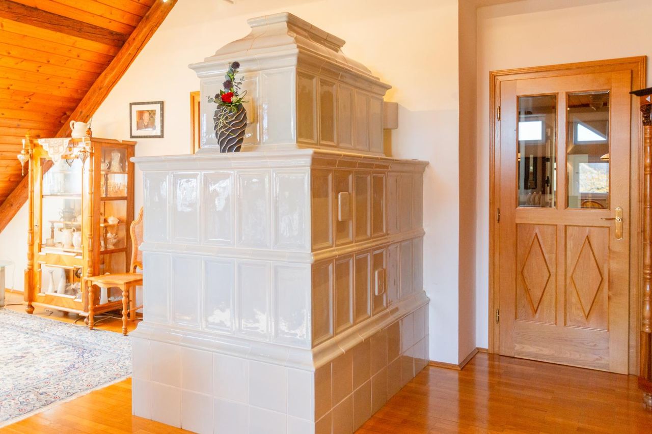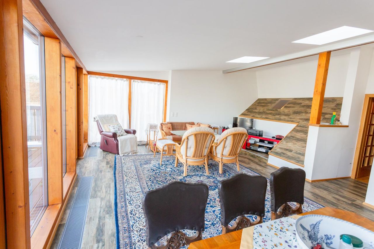 Der 1990 errichtete Dachgeschossbereich (WFL ca. 207m²) bietet modernen Wohnkomfort und folgende Räumlichkeiten: