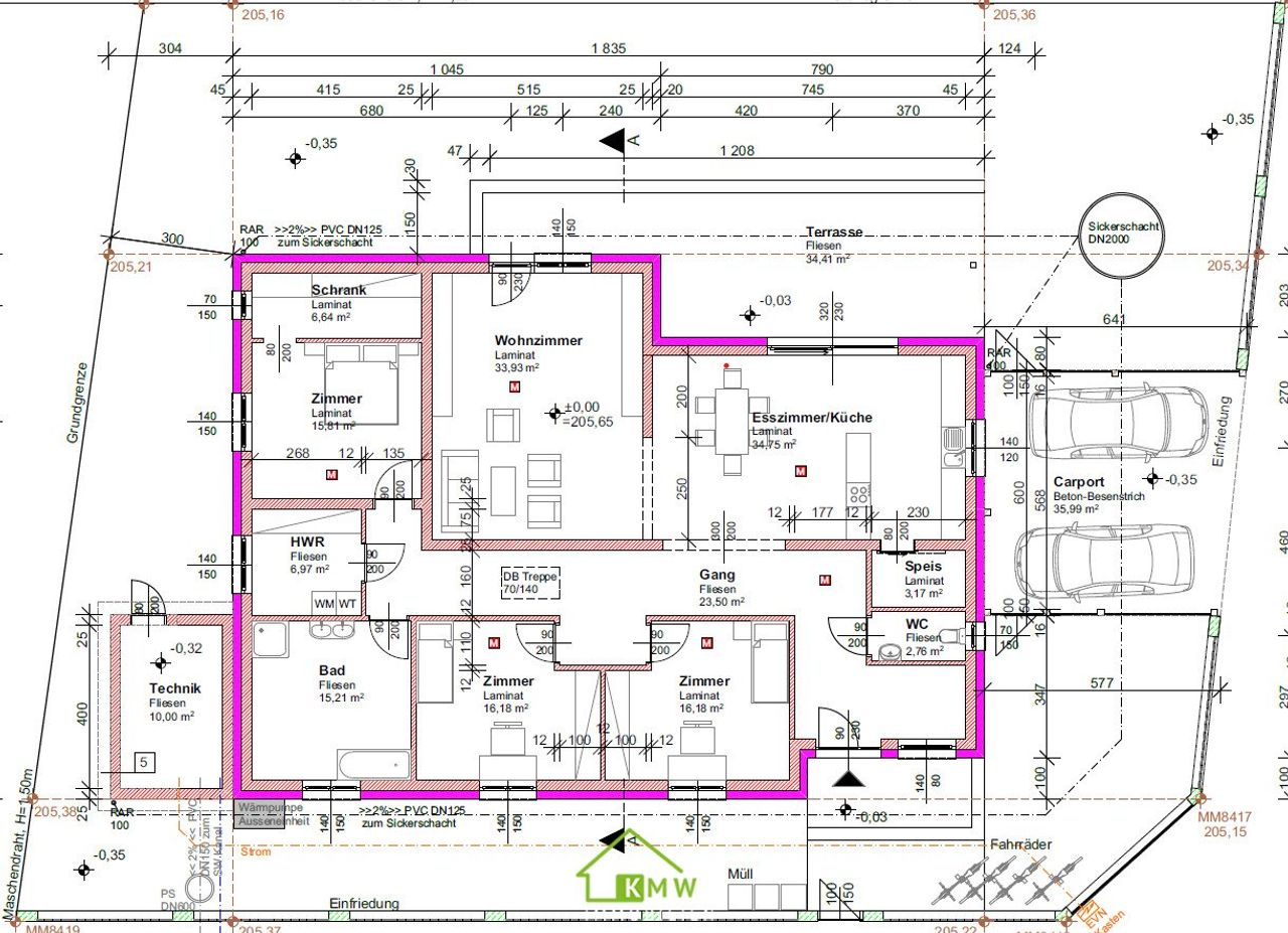 Weiters gibt es einen ca.10m² Technikraum der zusätzlichen Stauraum bietet.