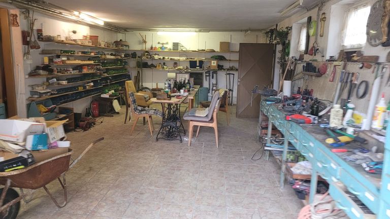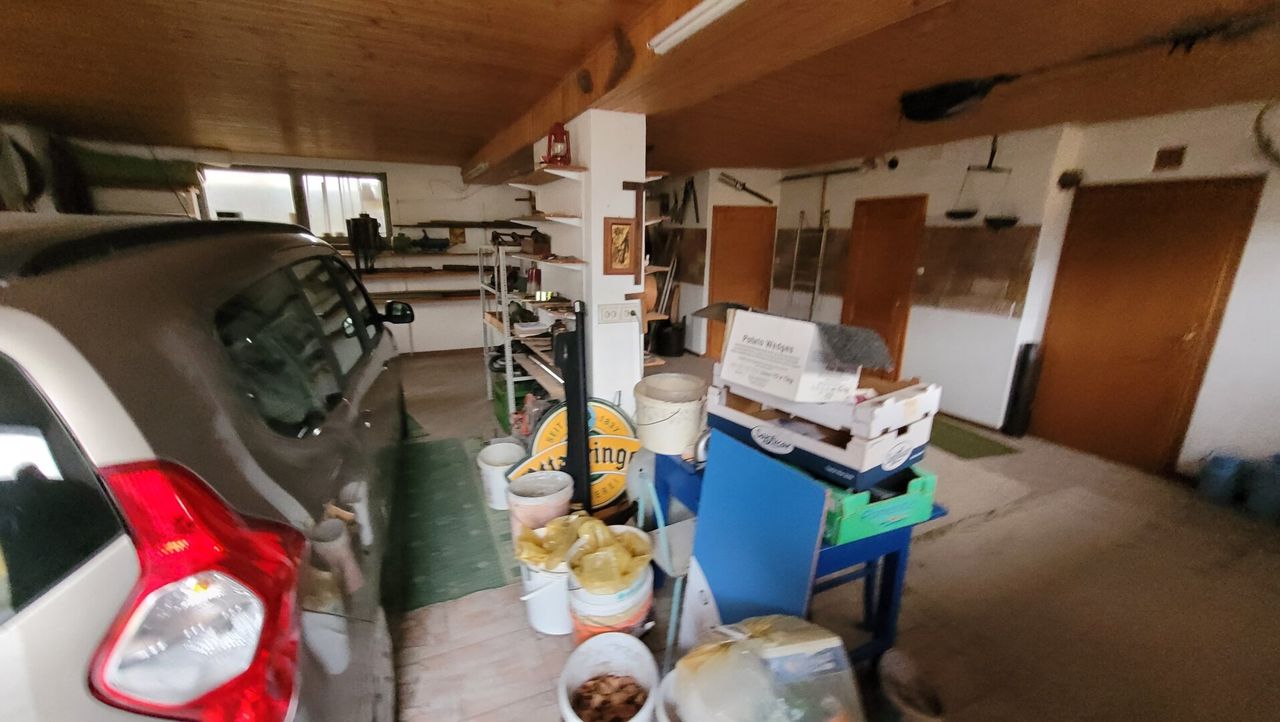 Die vielen Räume im Kellergeschoß haben verschiedene Zwecke: Waschküche, Lagerraum, Zugang zum Wohngeschoß - der große Abstellraum mit einem großen Einfahrtstor vom Innenhof wird als Werkstätte genutzt.