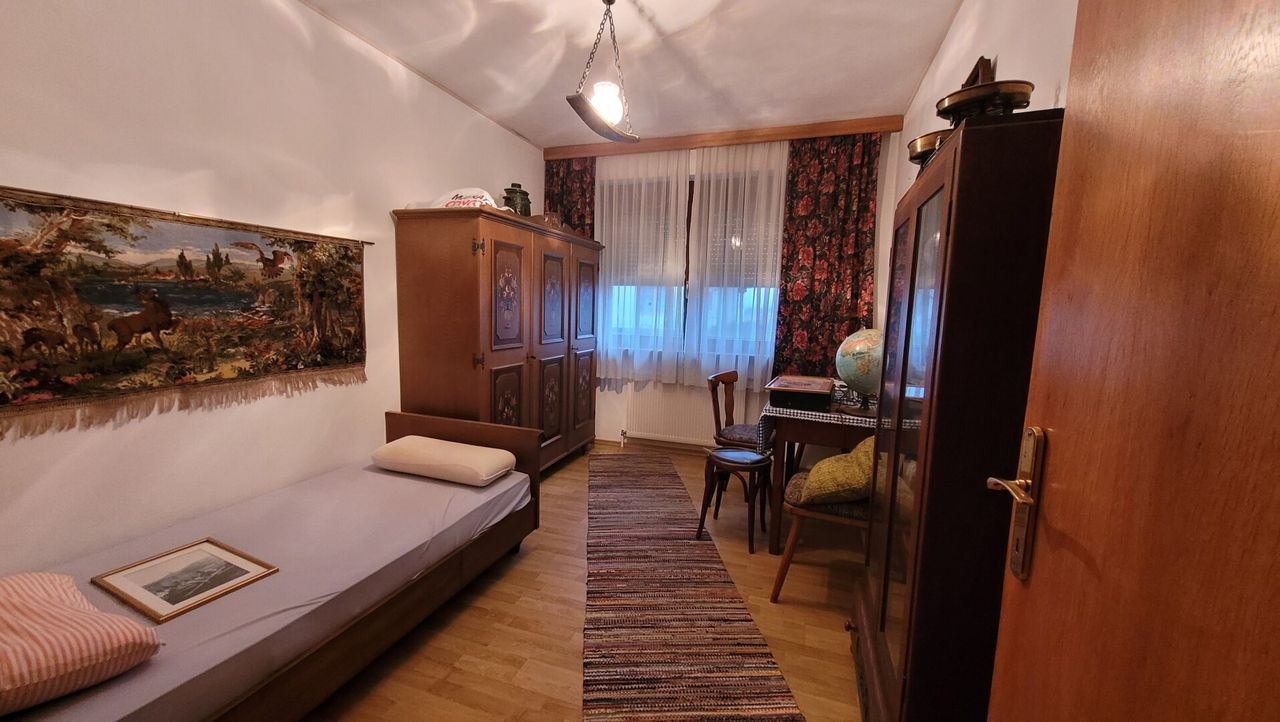 Nur von aussen begehbar ist eine kleine Einlegerwohnung mit Bad + WC sowie einem Schlafraum mit Kachelofen, hier könnte man ein Büro oder auch eine Massagepraxis einrichten (Wohnfläche: 30 m²)