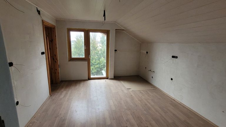 Das OG ist noch im Rohbauzustand: Schlafzimmer, Wohnzimmer, Küche, Bad, WC