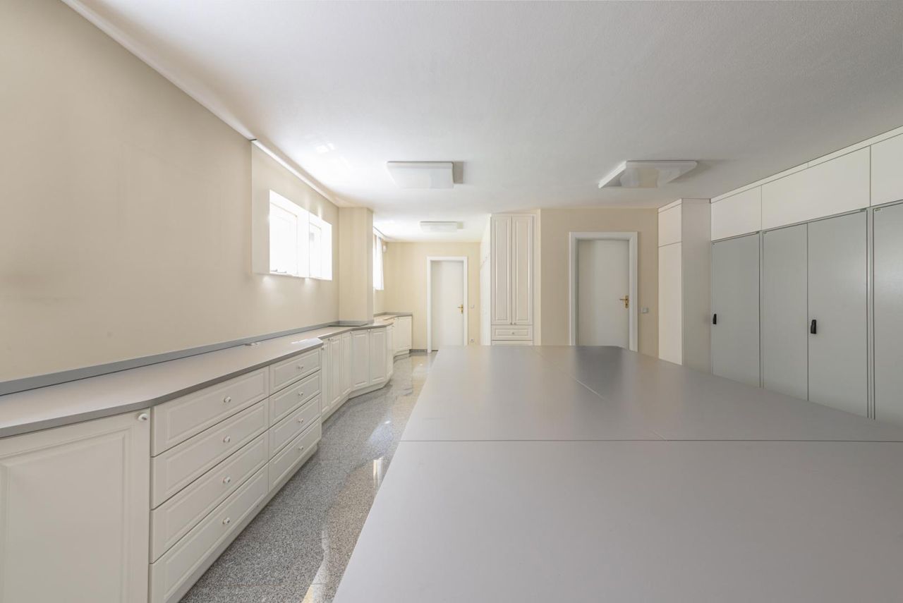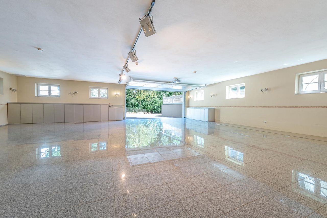 Mit einer Fläche von rund 170 m² bietet die Garage mehr als genug Raum für mehrere Fahrzeuge. Eine Glaswand zum Treppenaufgang verleiht diesem Bereich eine außergewöhnliche Note – ideal für Liebhaber exklusiver Automobile.