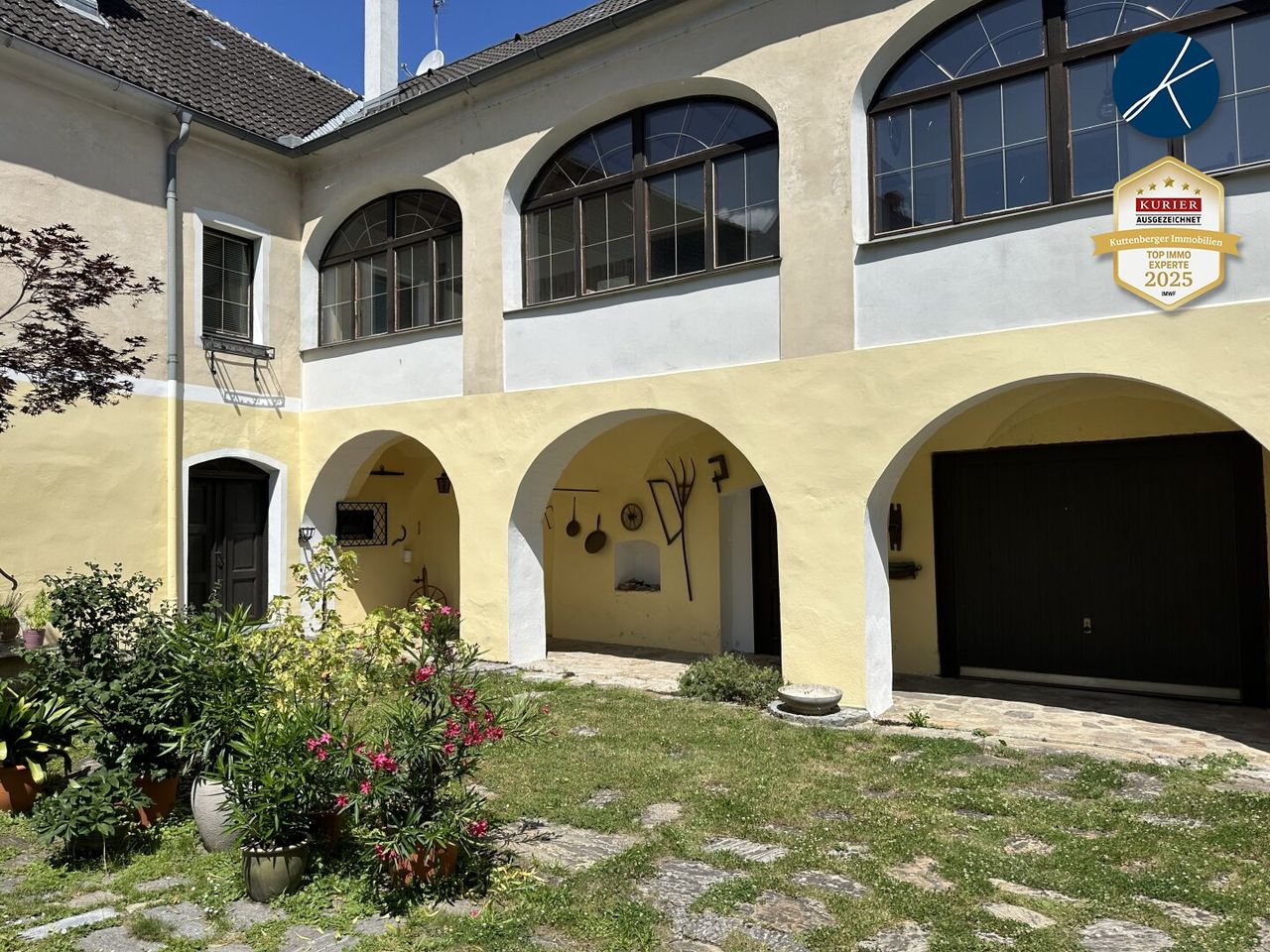 Im Erdgeschoß befindet sich ein großzügiger Innenhof und räumliche Nutzfläche.