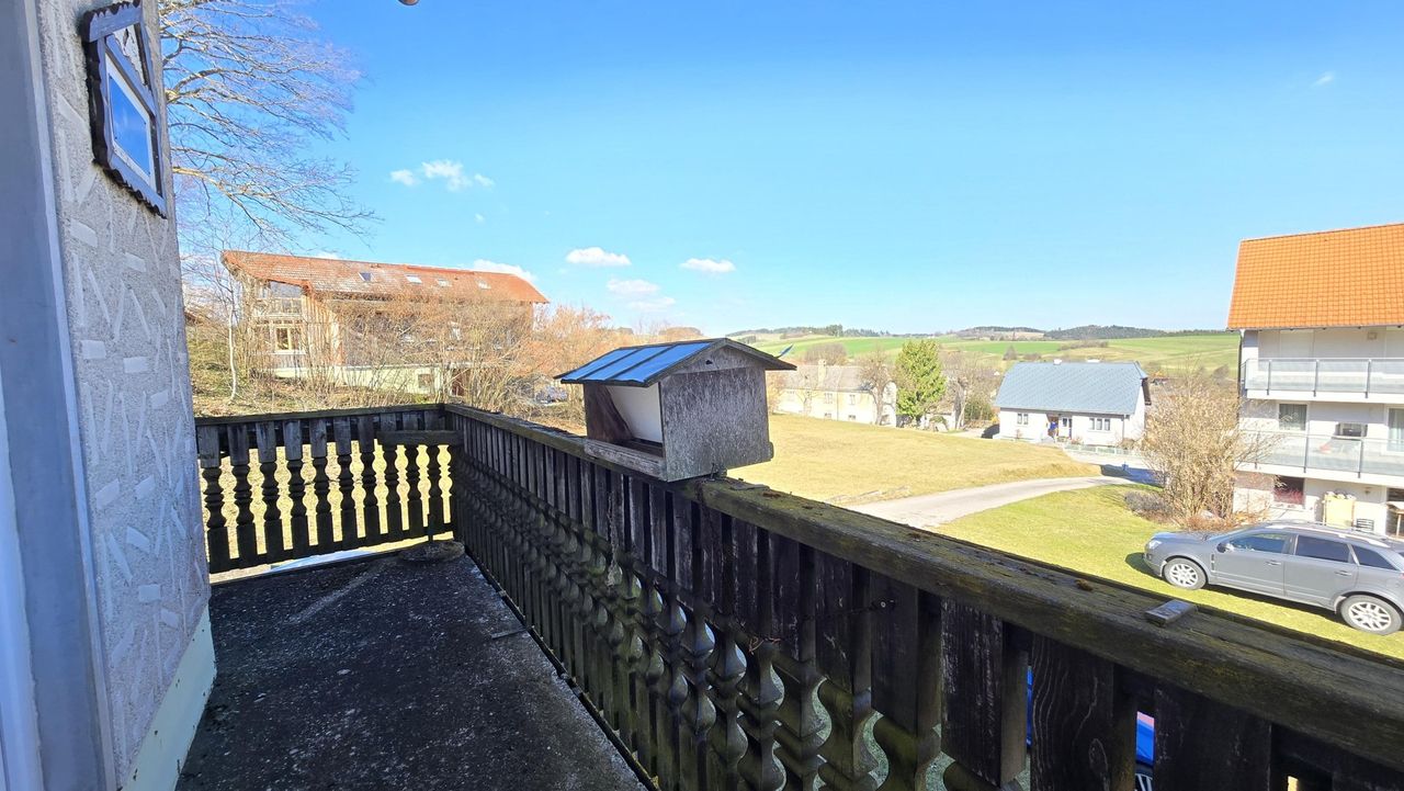Ausgang auf einen großen Balkon mit traumhaftem Blick auf die Burg Albrechtsberg