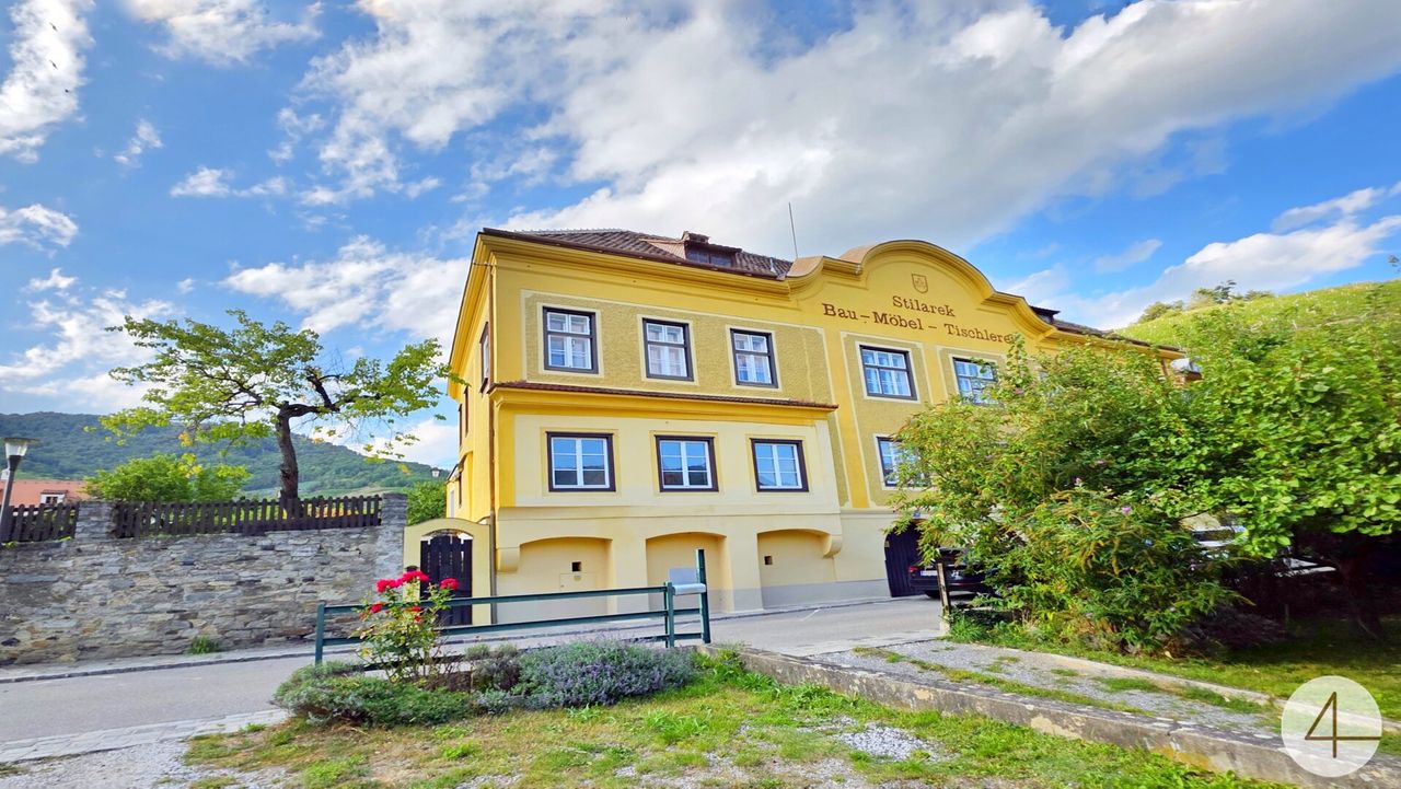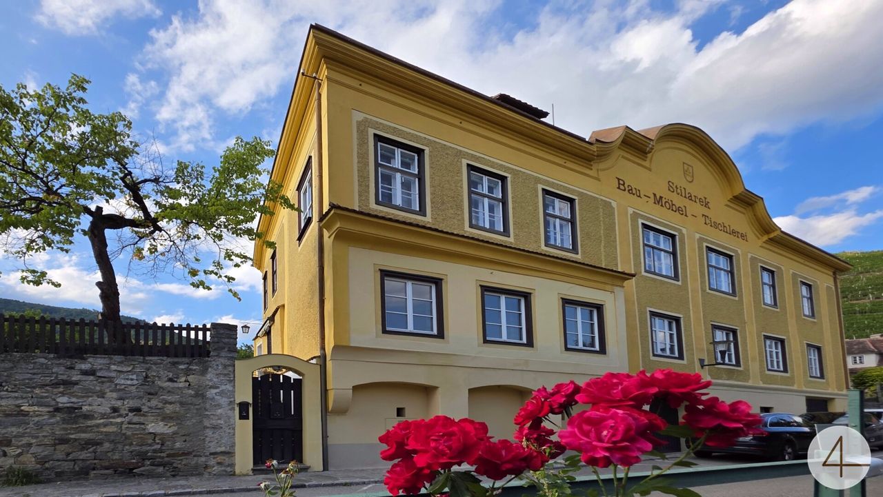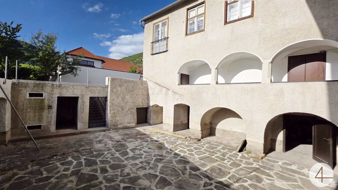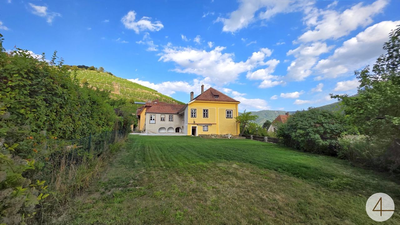 Im Herzen der UNESCO-Weltkulturerberegion Wachau präsentiert sich dieses außergewöhnliche Anwesen als ein Meisterwerk historischer Baukunst. Umgeben von Weinbergen und mit freiem Blick zur Donau, vereint es die Schönheit der Landschaft mit architektonischer Einzigartigkeit.