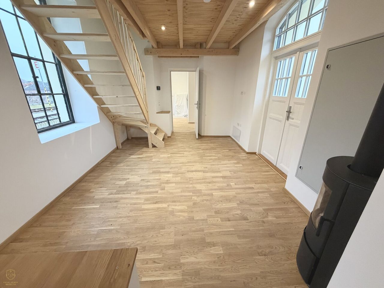 Das umfassend sanierte ehemalige Bahnhofsgebäude mit vielfältigen Nutzungsmöglichkeiten wurde komplett renoviert und auf heutige Wohnansprüche ausgelegt. In bester Lage, unverbaubar mit Blick auf die Donau Richtung Süden und auf den Ort Spitz Richtung Norden, blieb der historische Charakter dieser außergewöhnlichen Liegenschaft dabei erhalten.