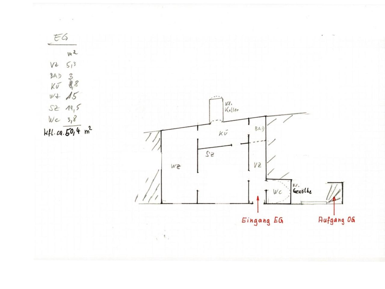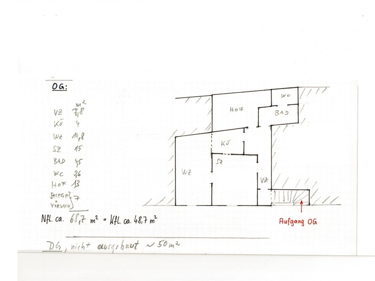 Im EG mit eigenem Eingang befinden sich auf ca. 50,4 m² ein Vorraum, zwei Zimmer, eine kleine Kochnische, Bad und WC! Im OG mit einem zweiten Zugang über eine herrliche alte Holztreppe liegen auf ca. 68,70 m², ebenfalls ein Vorraum, zwei Zimmer, Küche, Bad und WC.
