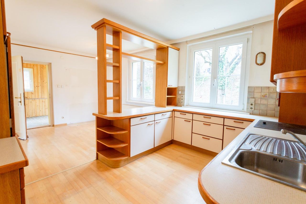 Für Käufer eröffnet sich damit die Möglichkeit, die Villa nach eigenen Vorstellungen zu modernisieren und zu gestalten. Die Größe des Grundstückes bietet darüber hinaus Entwicklungspotential.