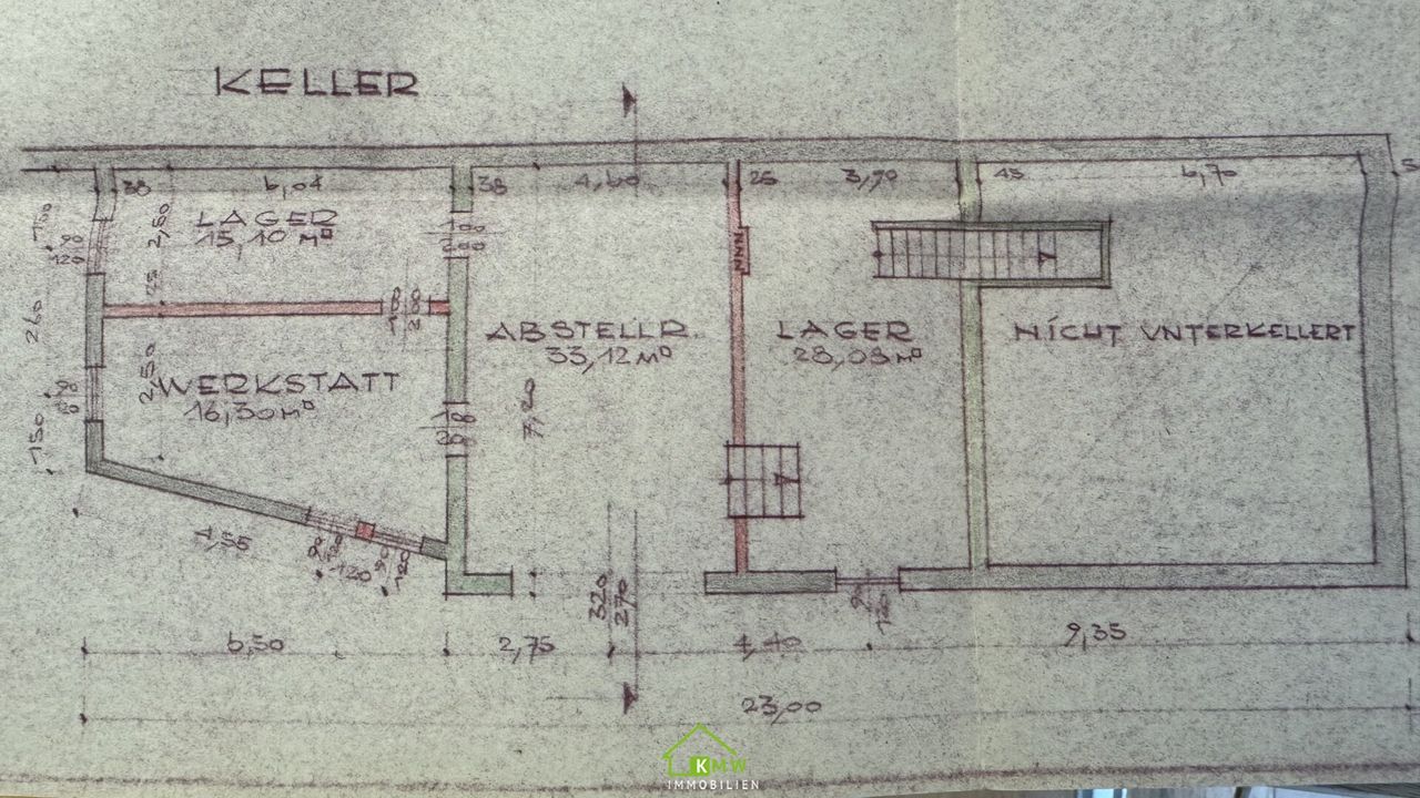 Der Keller bietet eine Fläche von ca. 90m², welcher zusätzlich über ein Garagentor erreichbar ist.