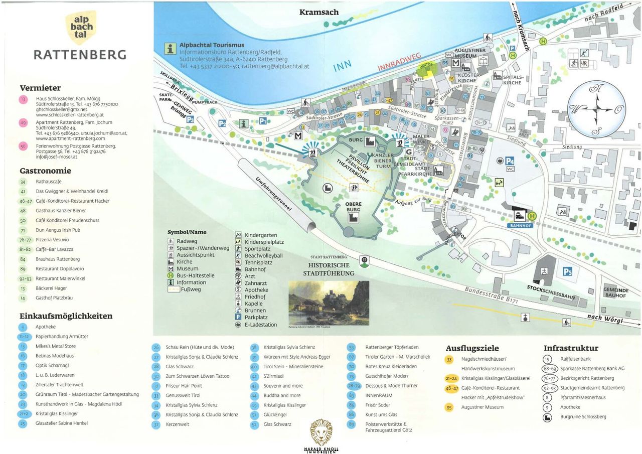Rattenberg liegt zwischen Fels und Inn am Fuß einer Burg aus dem 10. Jahrhundert. Früher diente die Stadt als Umschlagplatz für Waren der Innschifffahrt und als Zollstelle an der Grenze zwischen Tirol und Bayern. Das historische Zentrum ist im Inn-Salzach-Stil erbaut und heute eine Fußgängerzone.