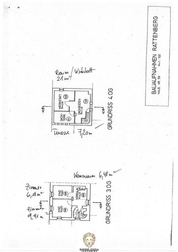 3. OG: Vorraum, Kaminraum, zwei Zimmer