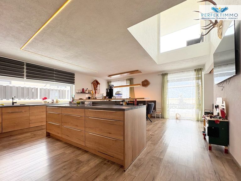 In idyllischer Ruhelage und mit optimaler Südwest-Ausrichtung präsentiert sich dieses außergewöhnliche Einfamilienhaus als ideales Zuhause für Familien, die Wert auf Qualität, Privatsphäre und nachhaltiges Wohnen legen. Durch die unverbaubare Hanglage genießen Sie eine traumhafte, freie Aussicht ins Tal sowie auf die umliegende Bergwelt – ein Wohngefühl, das Ruhe, Weitblick und Naturverbundenheit auf besondere Weise vereint. Das im Jahr 2021 errichtete Haus befindet sich in einem sehr guten, nahezu neuwertigen Zustand und überzeugt durch eine durchdachte Architektur sowie hochwertige Ausführung bis ins Detail.
