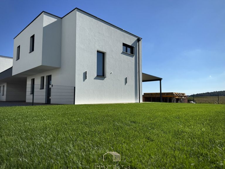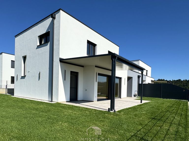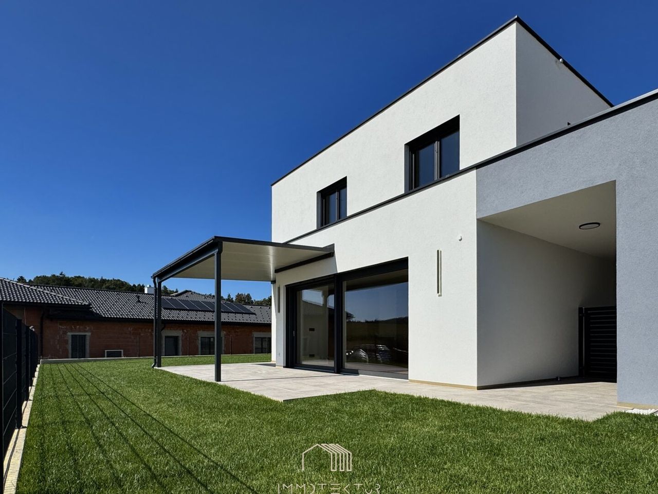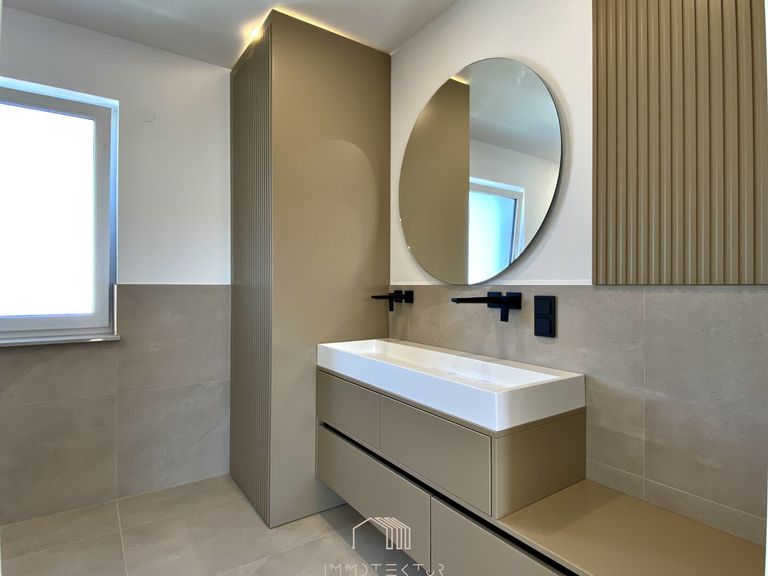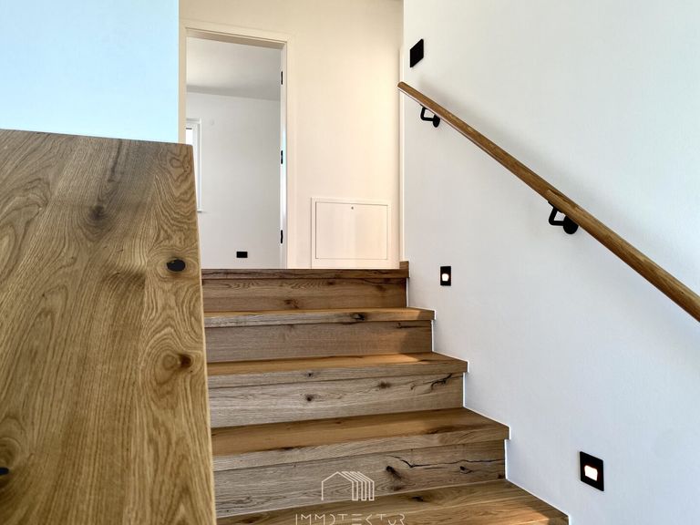 Errichtet in Massivbauweise überzeugt dieses Haus durch moderne Architektur, klare Linien und eine offene Raumgestaltung, die viel Licht und ein großzügiges Wohngefühl schafft. Die hochwertigen Materialien und die erstklassige Verarbeitung ziehen sich durch jedes Detail.