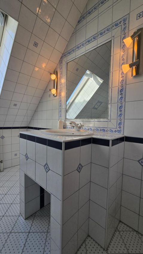 Drei Zimmer stehen zur Verfügung, eines davon besonders großzügig mit über 40 m² Wohnfläche und direktem Zugang zum Balkon, ideal als Masterbedroom, Atelier oder kombinierter Wohn- und Arbeitsraum. Ein weiteres Badezimmer mit WC sorgt auch hier für Komfort.
