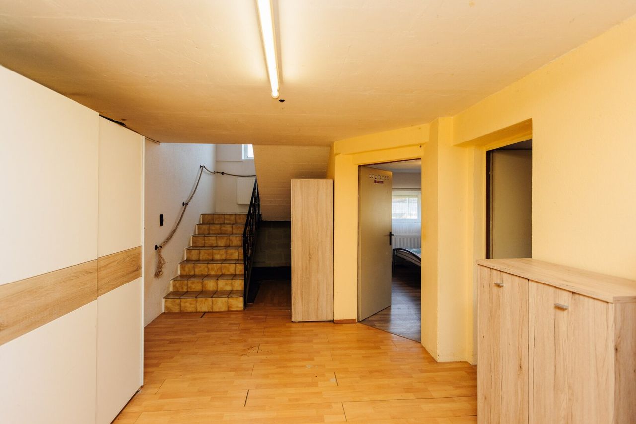 Im Untergeschoss befinden sich zwei weitere Zimmer, die flexibel als Gästezimmer, Hobbyraum oder Büro-/Arbeitszimmer mit extra Zugang von draußen, genutzt werden können. Ergänzt wird diese Ebene durch einen Technikraum sowie einen praktischen Lager-/Kellerraum.