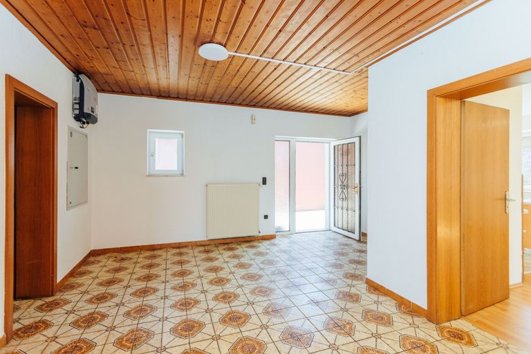 Das Haus ist voll unterkellert und bietet eine Gesamtfläche von rund 150 m². Es teilt sich in rund 120m² Wohnfläche und ca. 30 m² Kellerfläche. Die Raumaufteilung erstreckt sich über das Erdgeschoss und Untergeschoss.