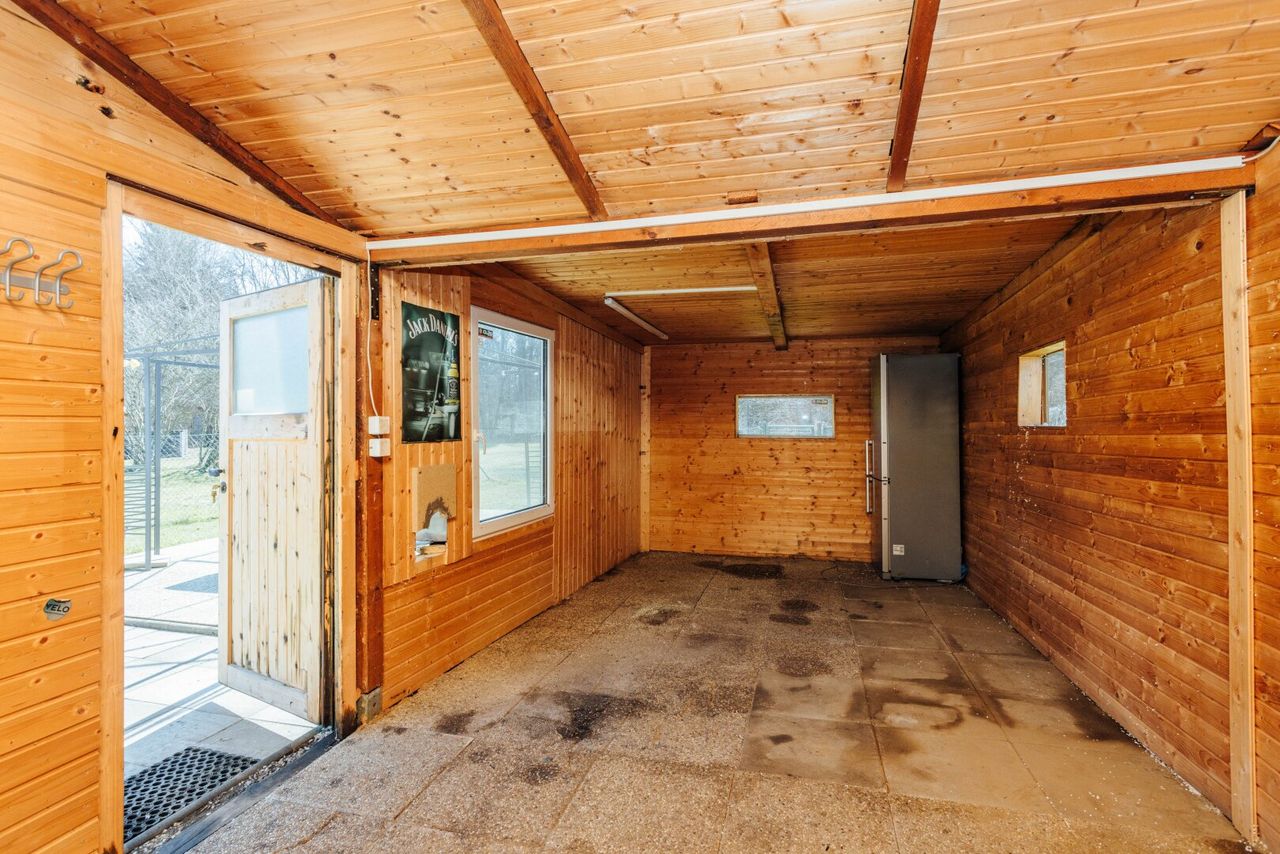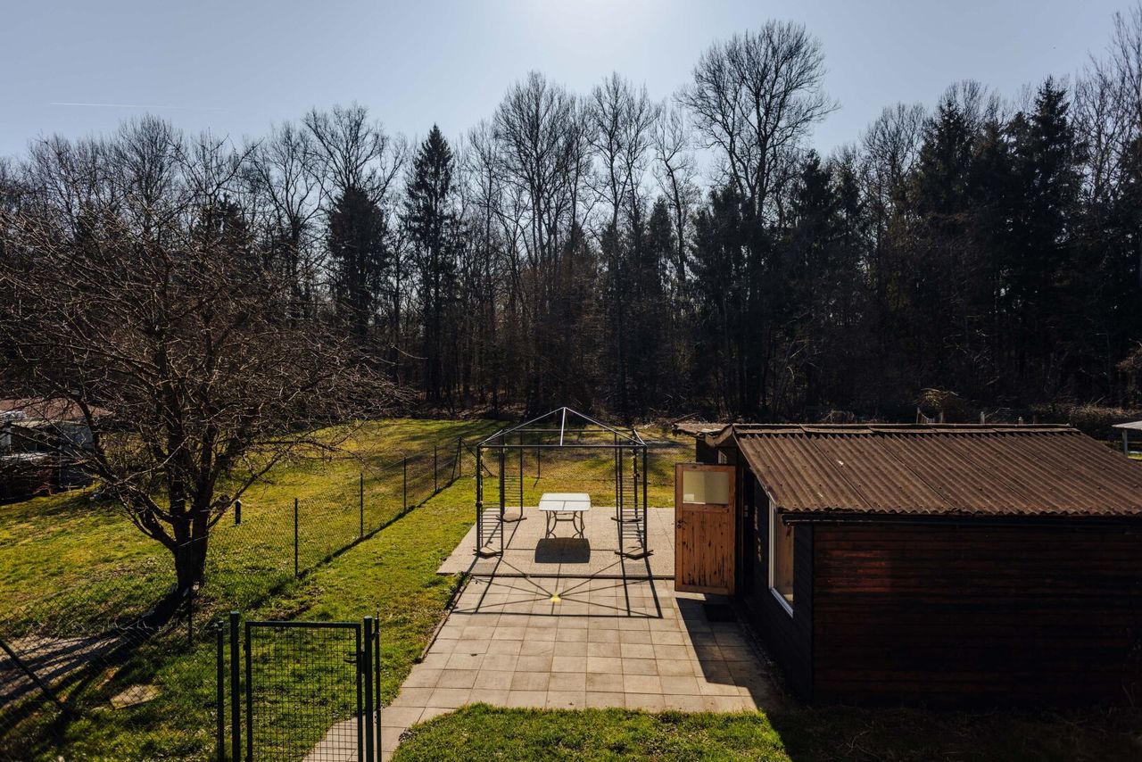 Zudem befindet sich im Garten eine helle und sehr gemütliche Gartenhütte, die einen weiteren Rückzugsort schafft.