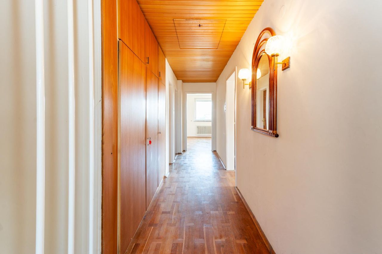 Da seit dem Baujahr keine umfassende Sanierung durchgeführt wurde, besteht Renovierungsbedarf bei Fenstern, Leitungen, Bad, Küche, etc. Das Dach ist mit Eternit gedeckt. Dadurch eröffnet sich jedoch die ideale Gelegenheit, das Haus nach eigenen Vorstellungen zu modernisieren und zu gestalten.