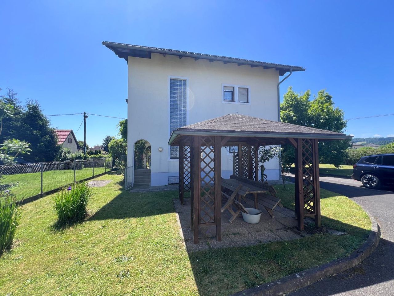 Zum Verkauf steht ein charmantes Ein-oder Mehrfamilienhaus in Tillmitsch gelegen auf einem großzügigen und gepflegten Grundstück in einer schönen Wohngegend. Das ursprünglich im Jahr 1952 erbaute Haus wurde 1980 aufgestockt und über die Jahre kontinuierlich hergerichtet. So wurden die Fenster 1991 und 1993 erneuert und mit Rolläden ausgestattet. Zuletzt erhielt das Haus im Jahr 2023 eine neue Gasheizung. Hier finden Sie genügend Platz für eine große Familie.