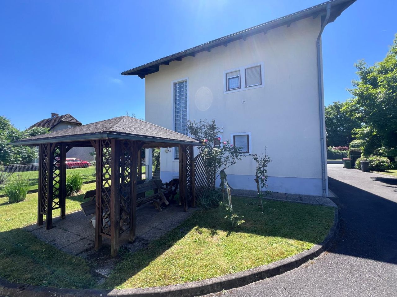 Eine geräumige Garage mit Abstellraum wurde 2001 erbaut. In dieser finden Sie genügend Platz für Autos aber auch Raum zum Handwerken.