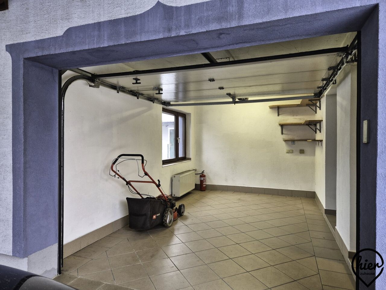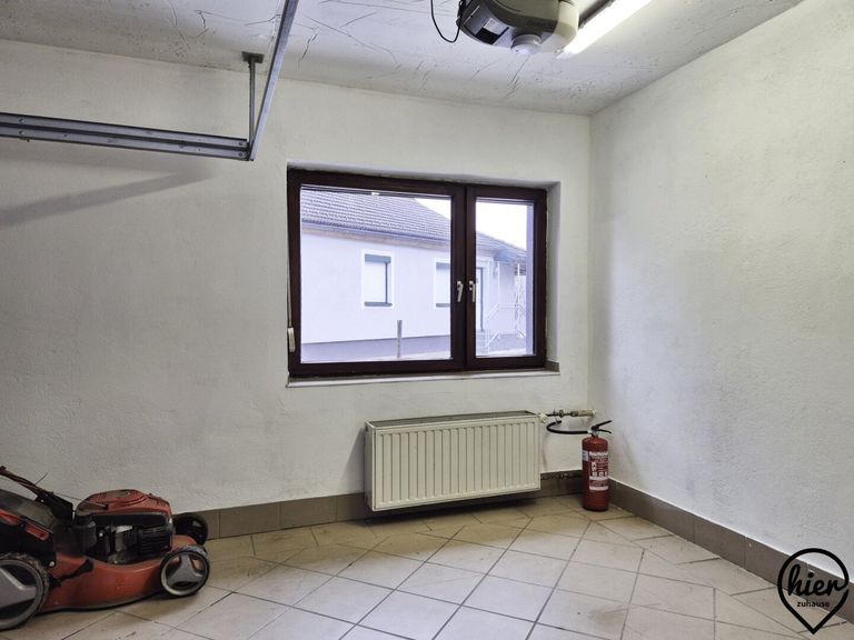 Die Garage bietet Platz für einen PKW. Neben der Garage gibt es noch einen kleinen Raum mit Wasseranschluss. Der Garage ist ein Carport vorgelagert.