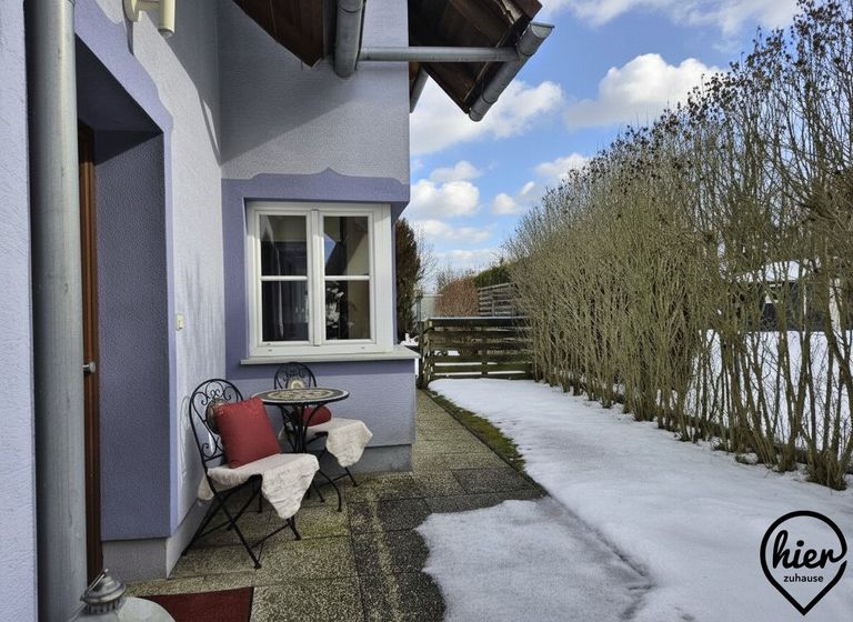 Das Haus überzeugt durch helle Wohnräume und ein angenehmes Wohnambiente. Im Erdgeschoss befinden sich dem Vorraum angeschlossen die möblierte Küche, das Wohnzimmer mit Zugang zur überdachten Terrasse, ein Abstellraum, das WC, das Bad mit Wanne und Dusche. Vom Vorraum gelangt man zudem in den Keller, in die Garage und in das Obergeschoss.
