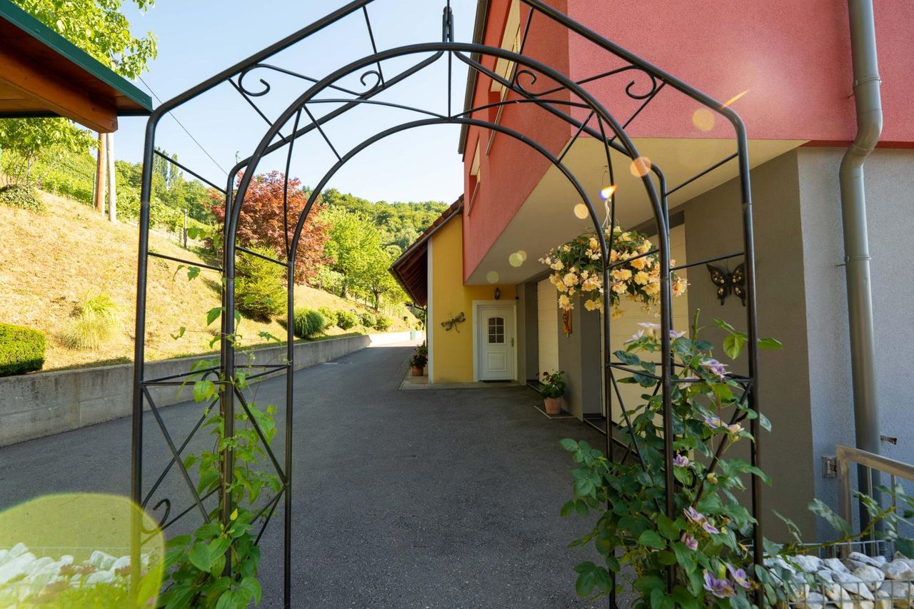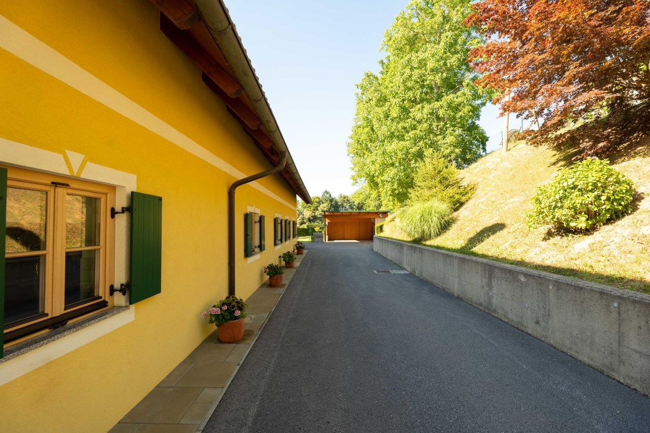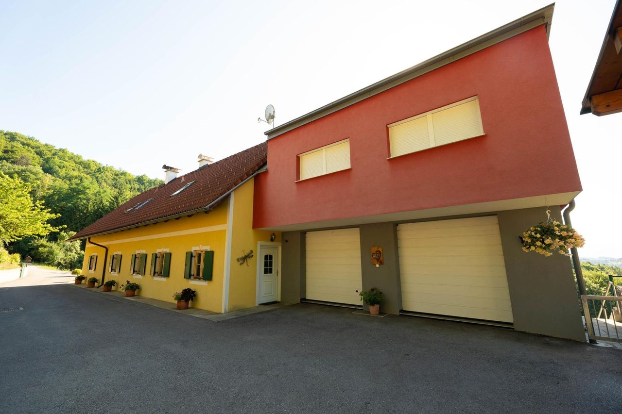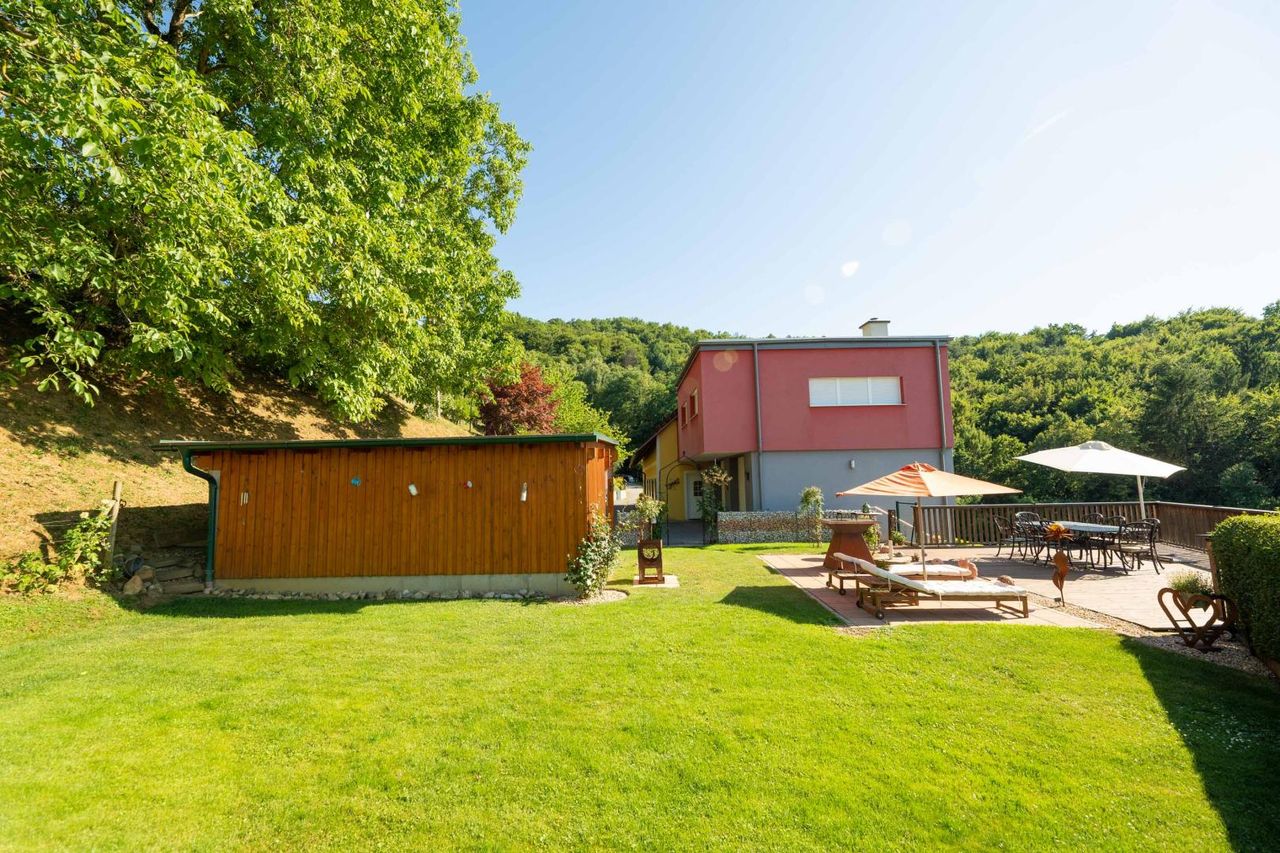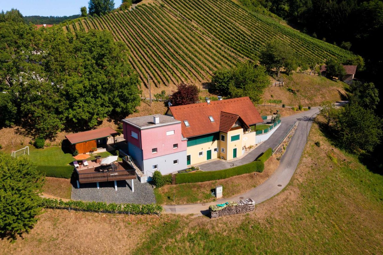 Zur Liegenschaft gehören rund 5 ha Grund, darunter ein professionell bewirtschafteter Weingarten mit einer erlesenen Rebsorte, landwirtschaftliche Flächen sowie Wald – ideal für Natur- und Weinliebhaber.