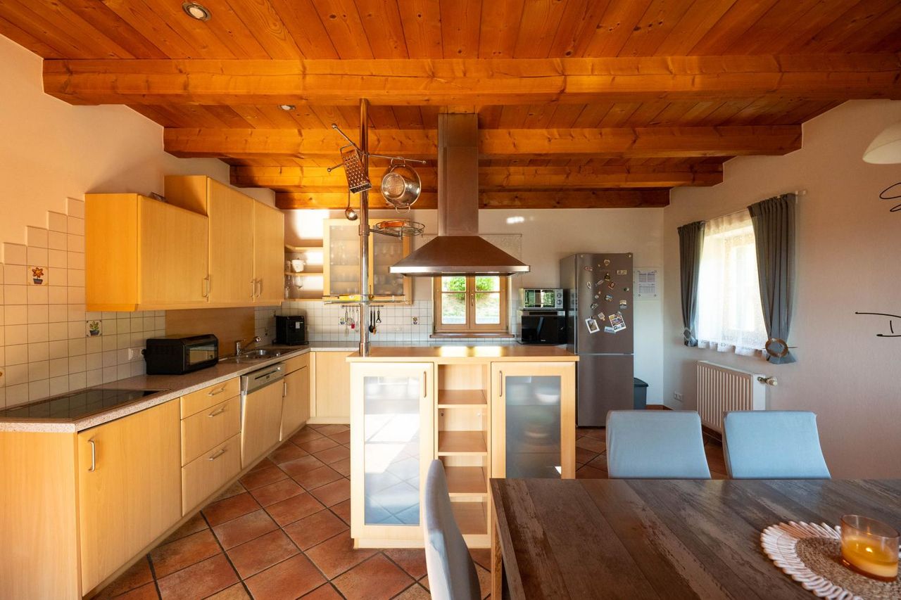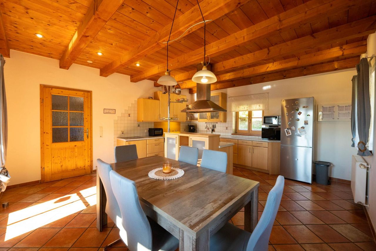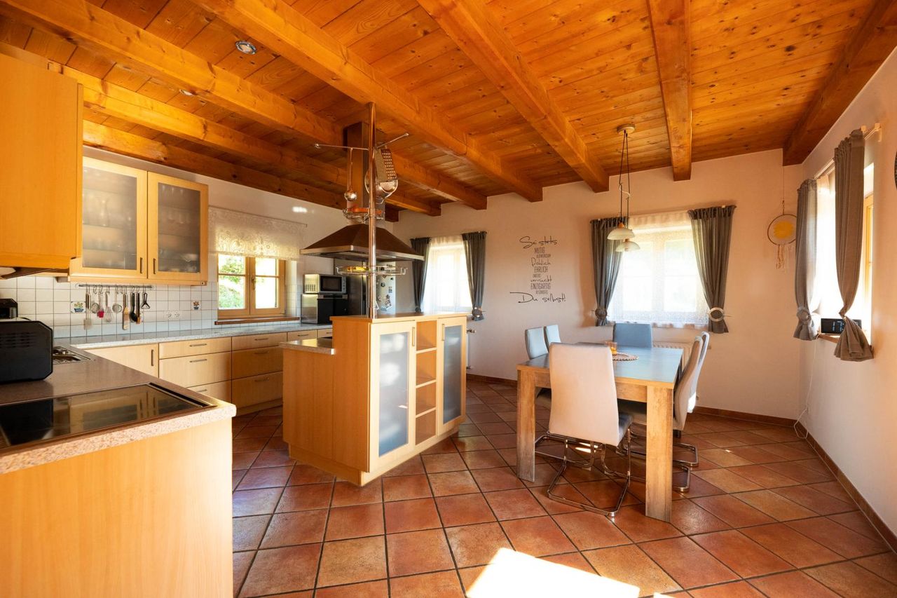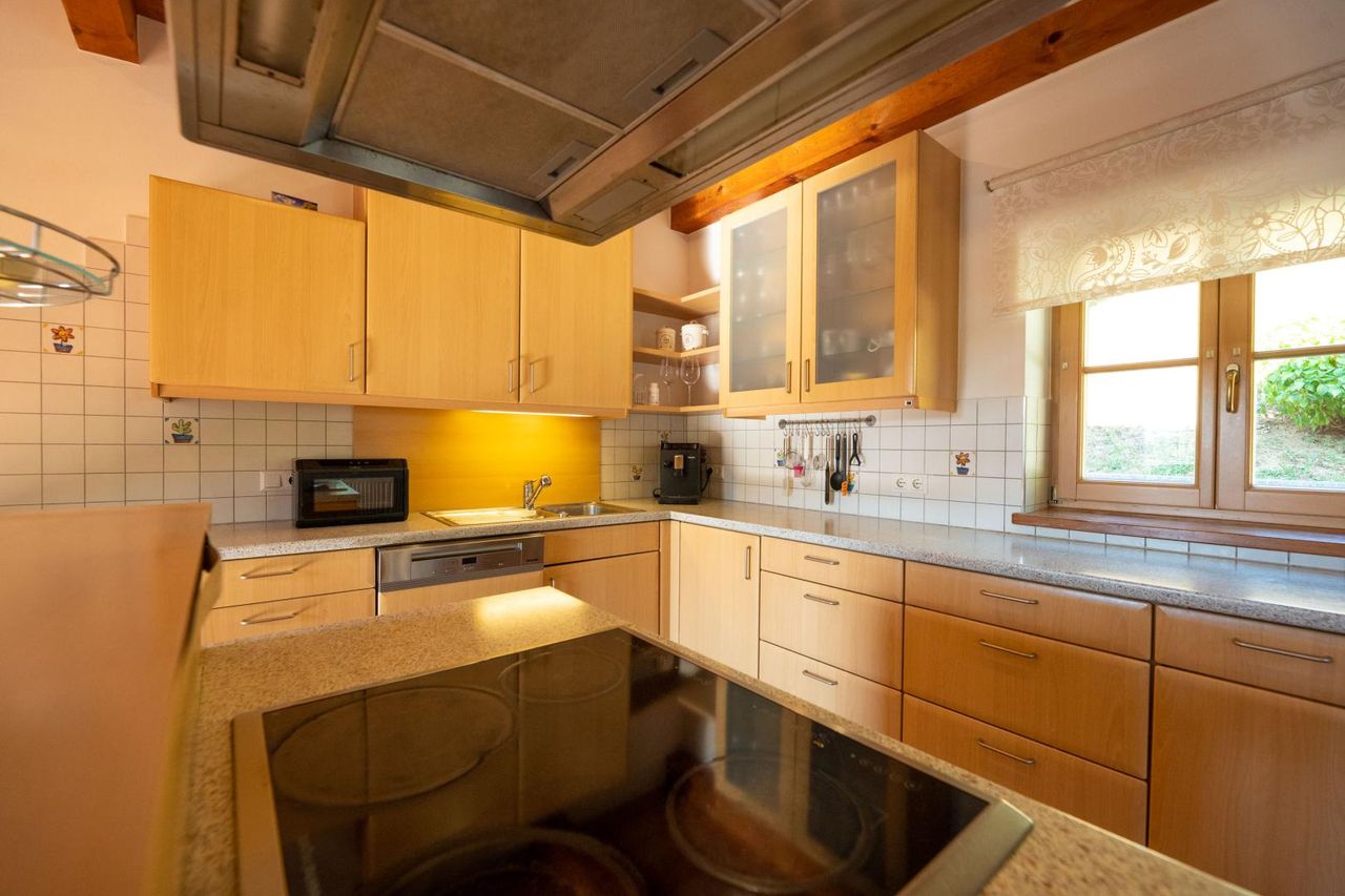 Zusätzliche, voll ausgestattete Küche mit gemütlicher Essgruppe – perfekt für Gäste oder Mehrgenerationenwohnen