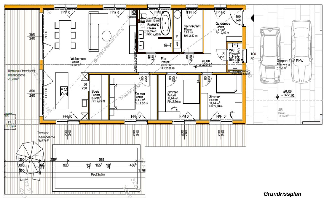 Darüber hinaus besteht, wie in der Grundrissplanung ersichtlich, die Möglichkeit zur Errichtung eines Pools, der den Wohnkomfort zusätzlich unterstreicht und die Lebensqualität im eigenen Zuhause noch weiter erhöht.