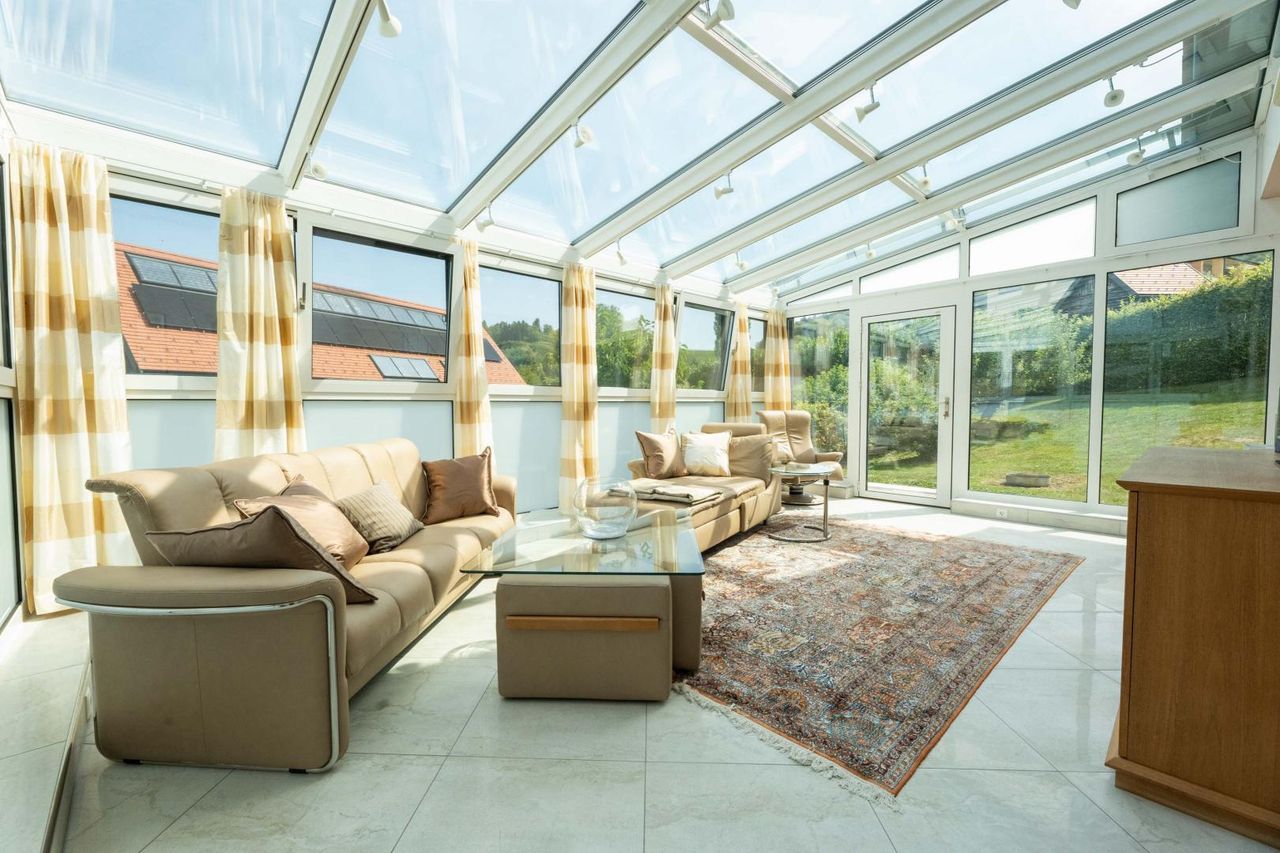 Der im Erdgeschoss angebaute Wintergarten, ist ein Meisterwerk an Technik – vollautomatisiert, selbstbelüftet, beschattet und klimatisiert.