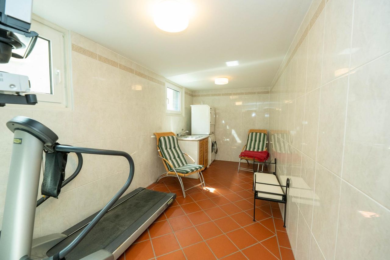 Der Keller überrascht als wahres Herzstück des Hauses: Neben dem Weinkeller gibt es einen einladenden Raum zum Zusammensitzen inkl Klappbett, eine eigene Sauna sowie einen Trainingsraum. Vom Keller aus gelangen Sie direkt in eine der beiden Garagen – ein praktisches Detail, das den Alltag erleichtert.