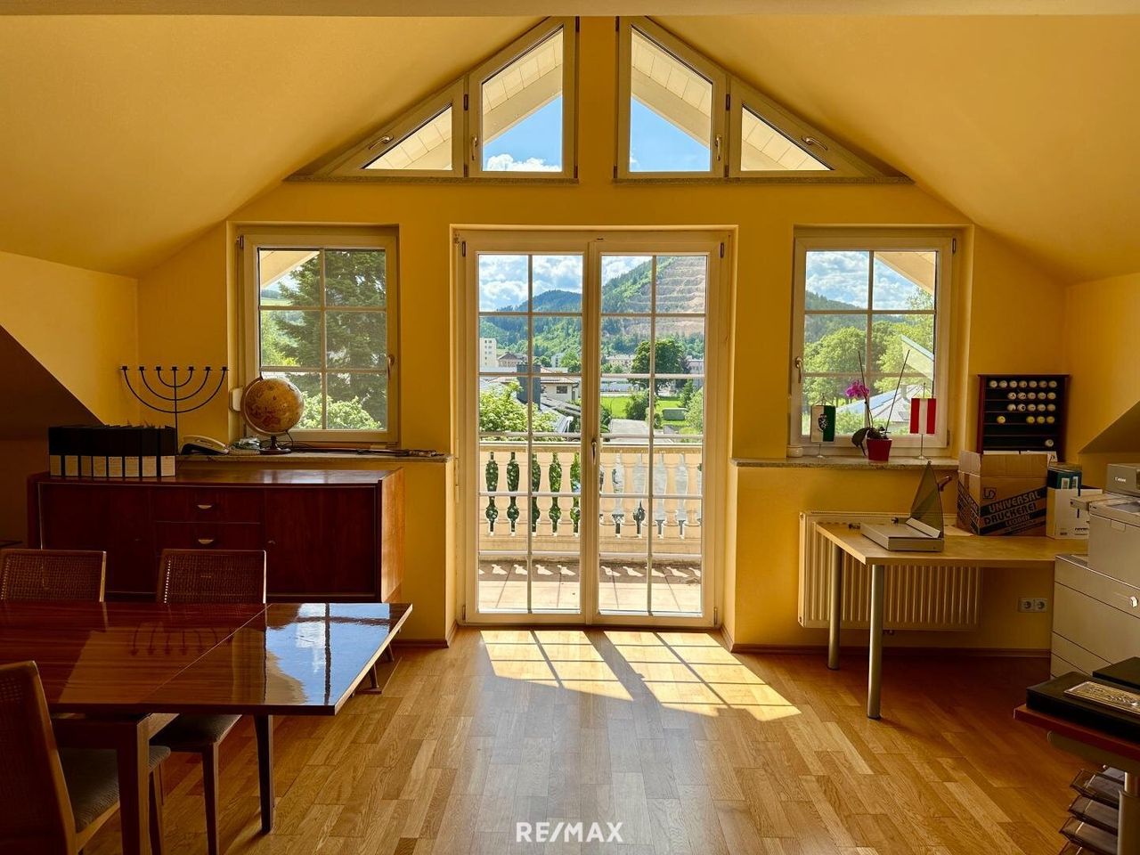 Die lichtdurchfluteten Räume bieten herrliche Ausblicke auf die umliegende Landschaft und den Weitblick auf die Berge. Auch die derzeit als Kanzlei genutzten Büroräumlichkeiten im oberen Bereich vereinen funktionale Arbeitsumgebung mit inspirierender Aussicht – ein Ort, der Wohnen und Arbeiten in perfekter Balance ermöglicht.