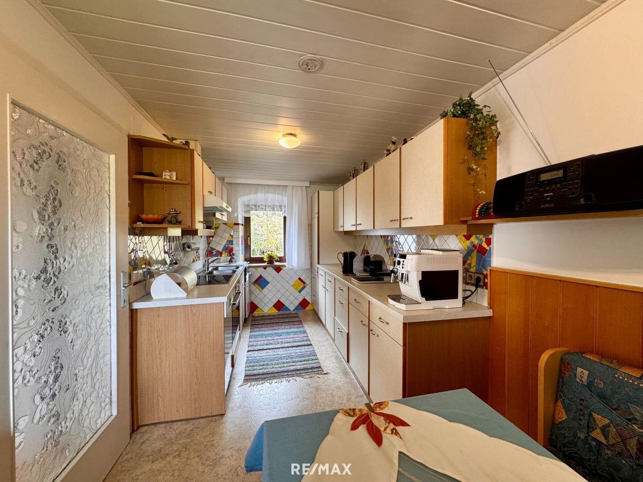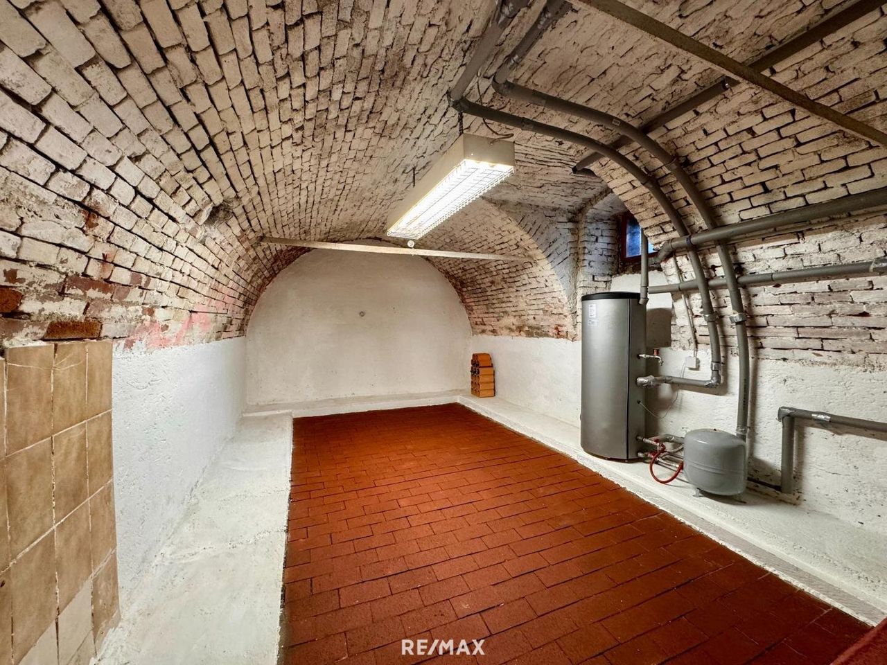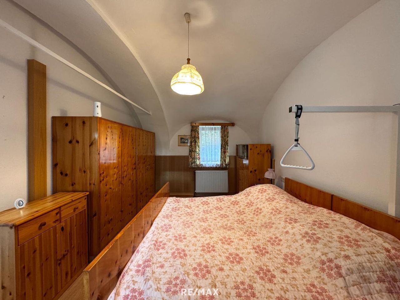 Auf dem Grundstück befindet sich ein Wohnhaus mit einer Wohnfläche von ca. 114 m², aufgeteilt in zwei Wohneinheiten. Im Erdgeschoss befindet sich eine kleine Wohnung mit Küche, einem Zimmer und Bad. Die zweite Wohneinheit im Obergeschoss ist über eine Außentreppe separat zugänglich und besteht aus Küche, Wohnzimmer, zwei Zimmer sowie Bad und Abstellraum. Das Gebäude ist nicht unterkellert. Im hinteren Bereich, in den Hang gebaut, befindet sich jedoch ein Kellerraum, in dem sich die Gastherme sowie der Warmwasserboiler befinden.