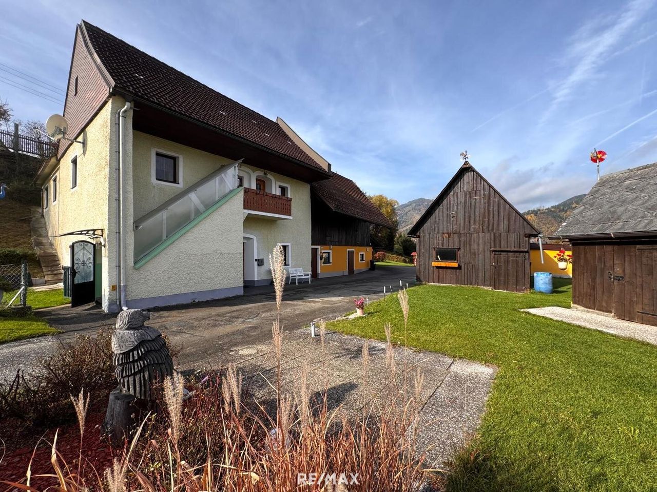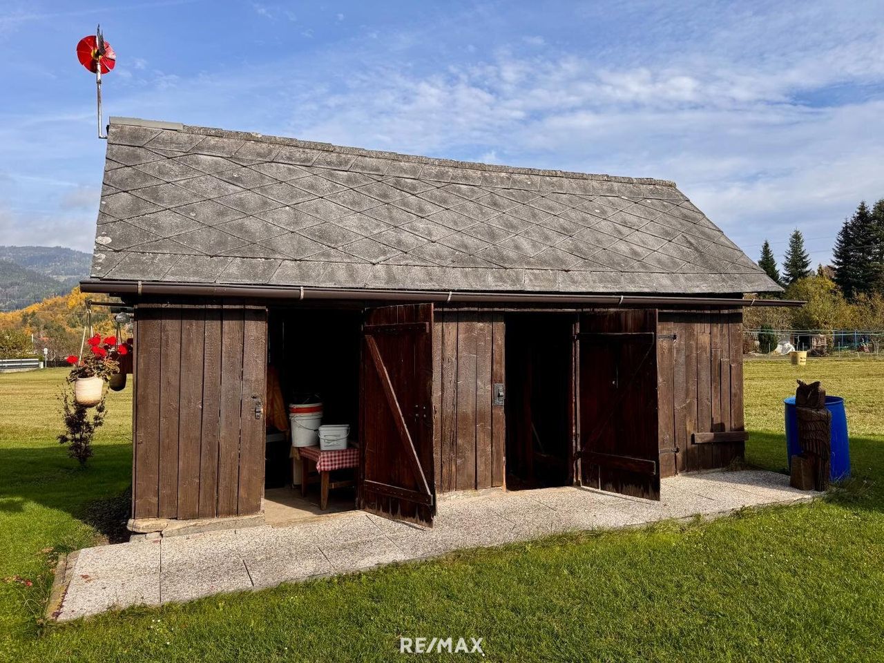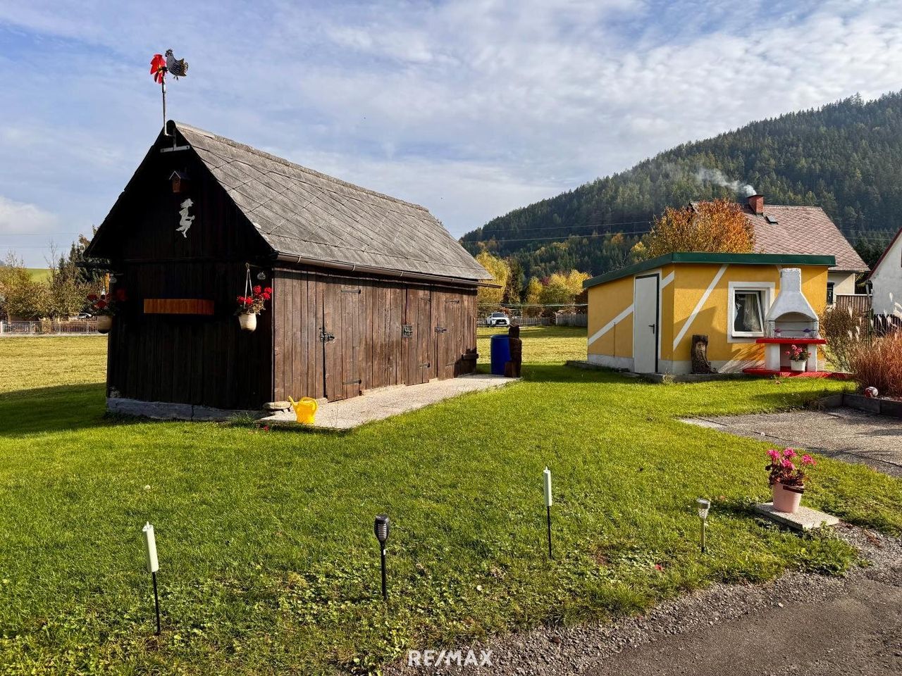 Ergänzt wird die Bebauung durch ein kleines Stallgebäude mit angebautem Carport und Abstellraum. Zudem befinden sich zwei ältere Stadl auf dem Grundstück, die zusätzliche Lager- oder Nutzungsmöglichkeiten bieten.