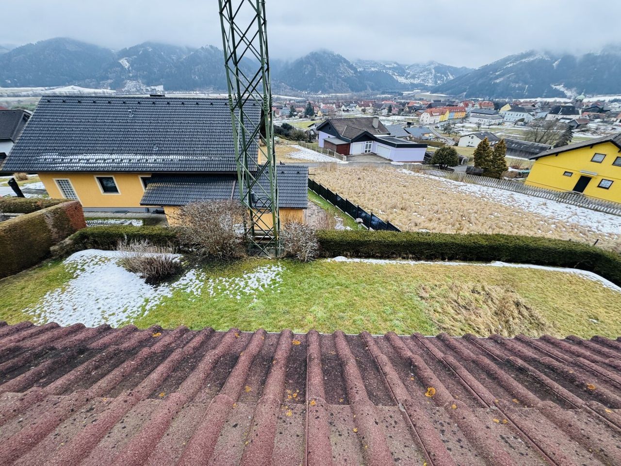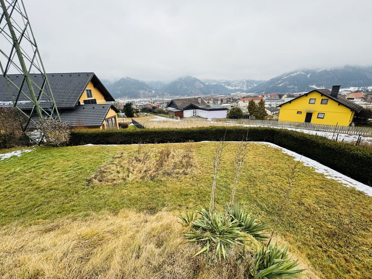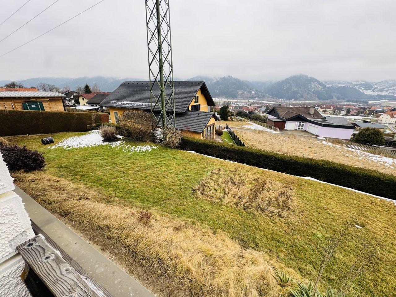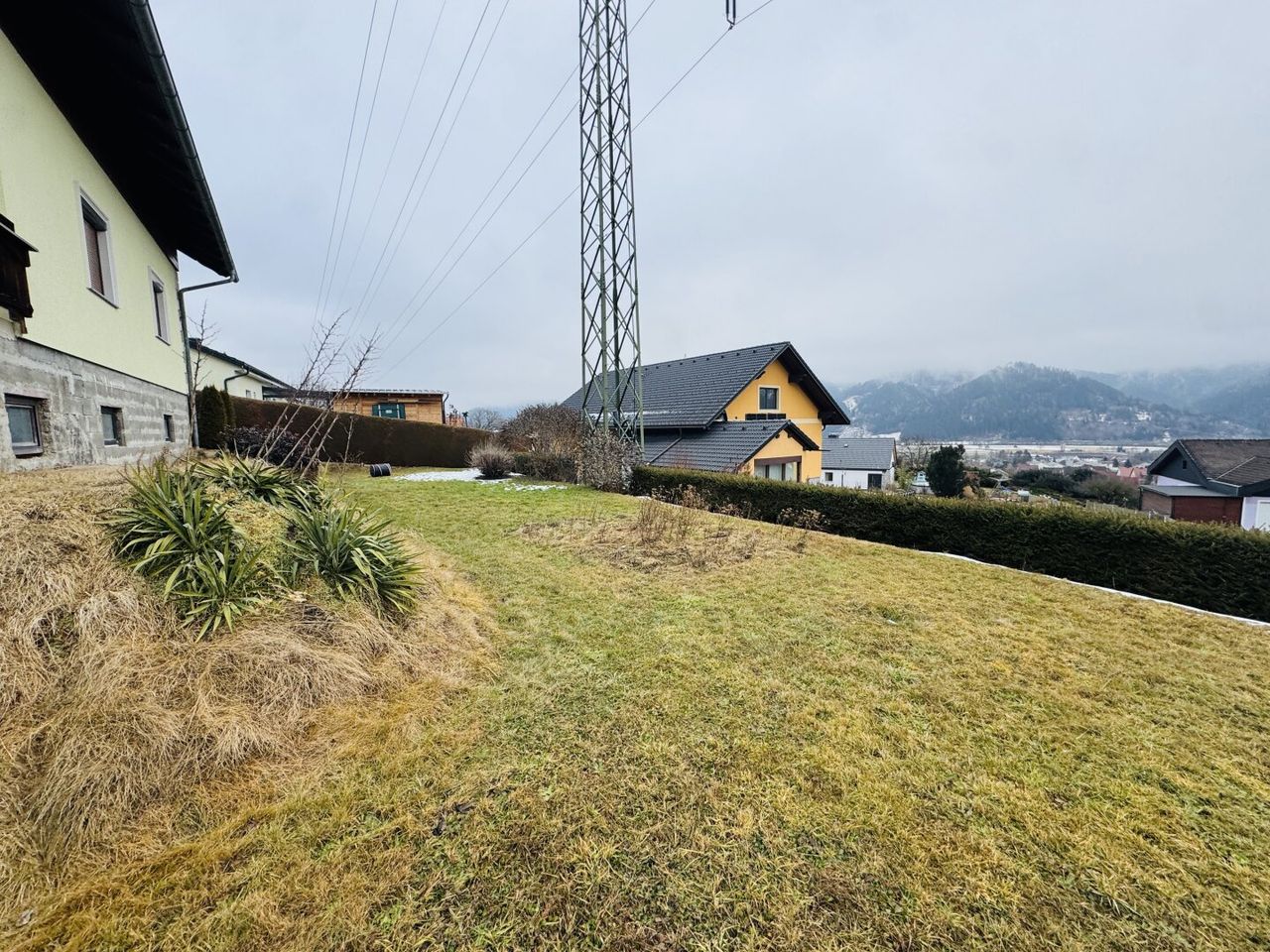 Derzeit am Grundstück befindlicher Strommasten wird 2026 weiter an die Grundstücksgrenze verlegt