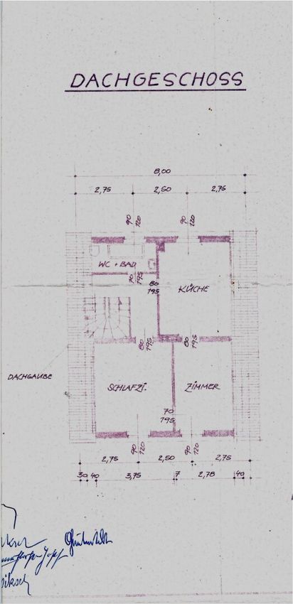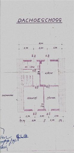 Dachgeschoß: 3 Zimmer davon 1 Zimmer mit Balkon , Bad mit WC,Vorraum.