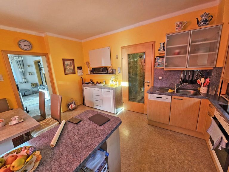 Vorraum, WC, Bad mit Dusche, große Küche mit Essbereich, Wohnzimmer