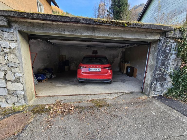 Doppelgarage an der Parkstraße in den Hang gebaut, mit elektrischem Toröffner.