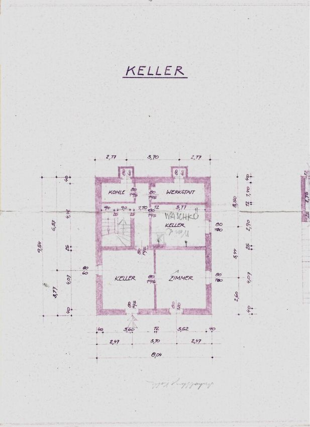 Keller: 3 größere Räume, Öltank, Werkstatt, Vorraum und Ausgang auf die