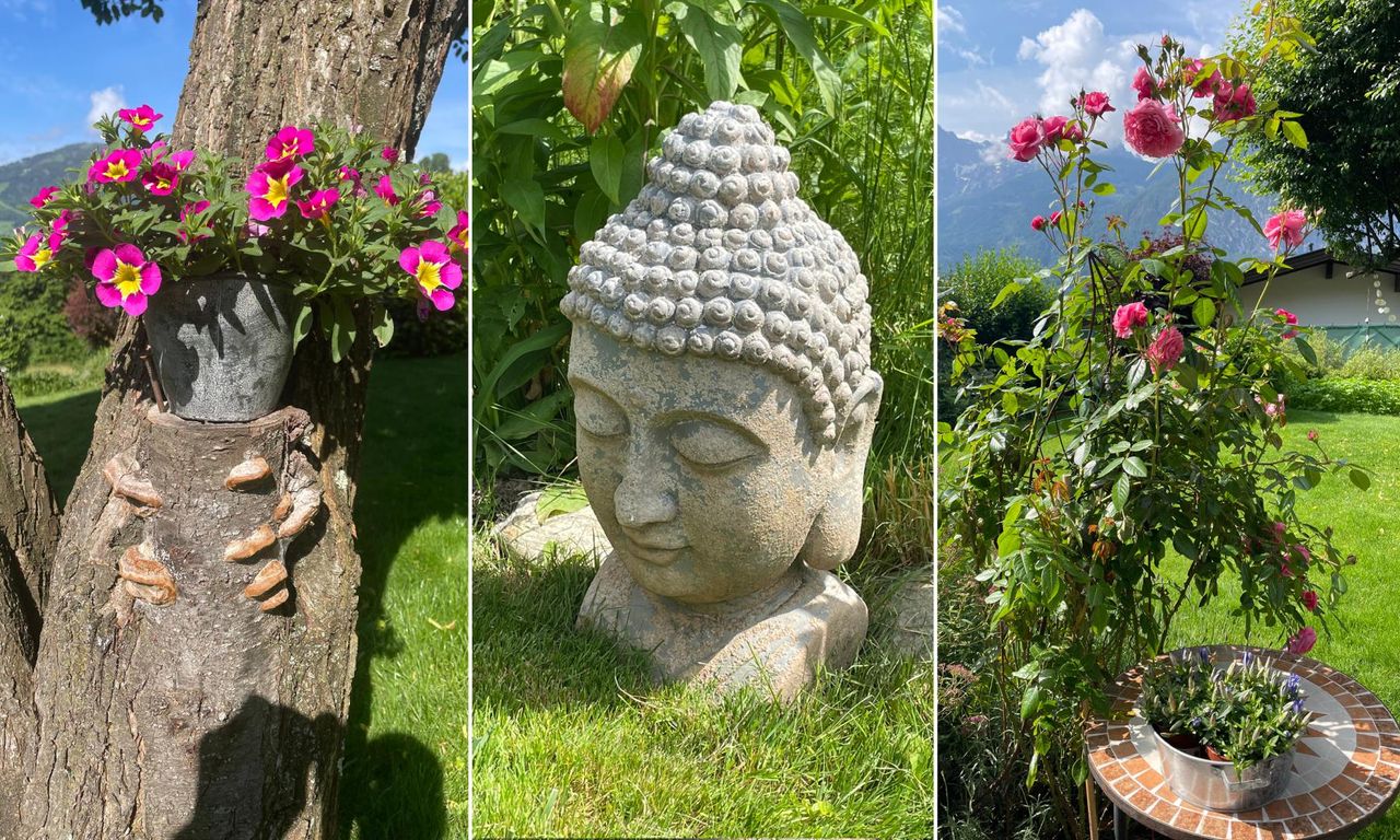 Der liebevoll gestaltete Garten mit sonnigen und schattigen Plätzen ist eine private Wohlfühloase – perfekt zum Entspannen, Spielen oder für gesellige Sommerabende.