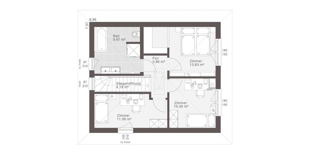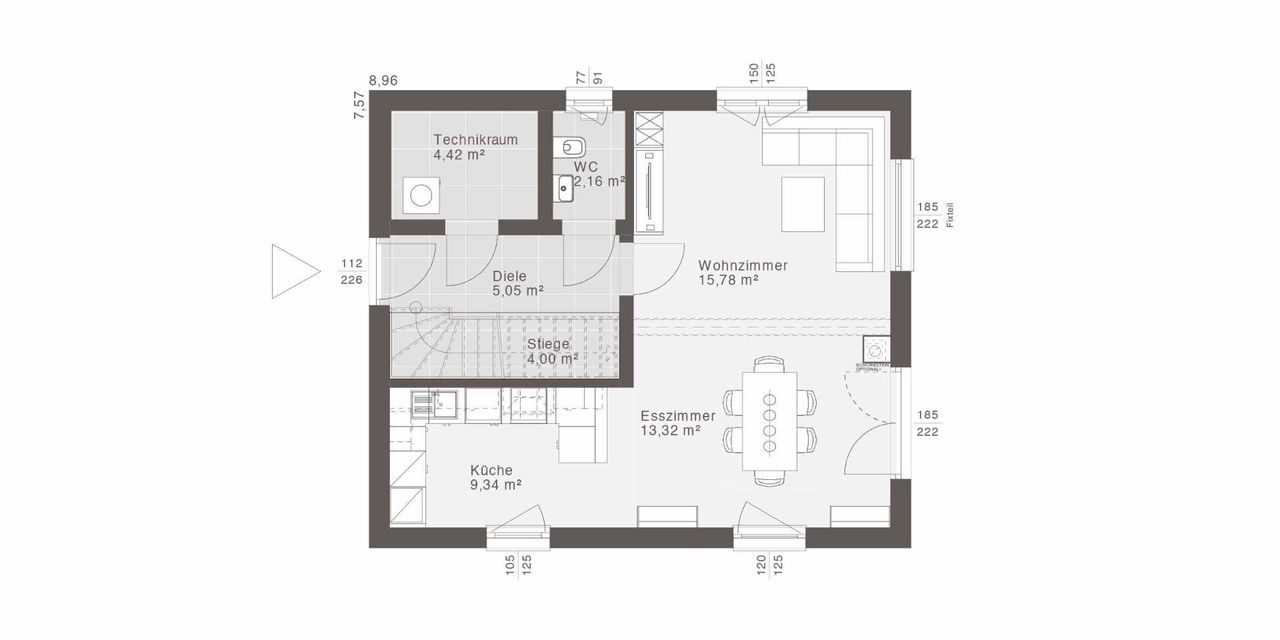 Genug Raum fürs Familienleben! Der Mittelpunkt des ca. 107 m² großen Hauses ist der offene Wohn- und Küchenbereich, während das Obergeschoss mit dem Schlafzimmer und den beiden Kinderzimmern viel Privatsphäre bieten.