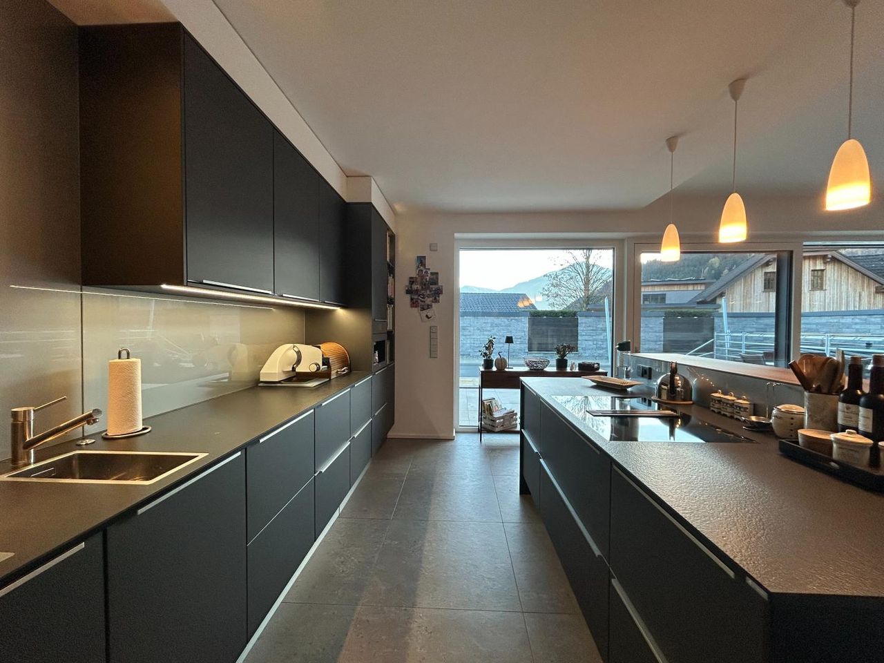 The high-quality kitchen is not only functional but also ideal for social cooking and entertaining.