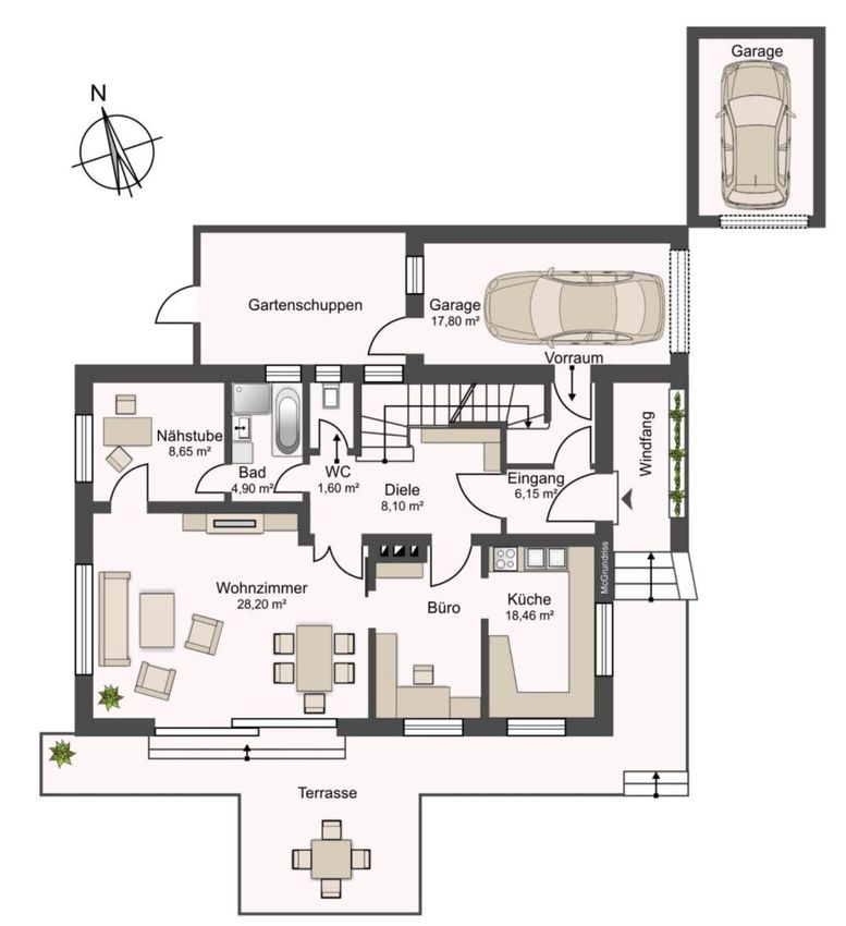 Das Wohnhaus ist sofort verfügbar. Dies bedeutet, dass Sie keine langen Wartezeiten in Kauf nehmen müssen und direkt mit der Fertigstellung Ihres neuen Zuhauses beginnen können.